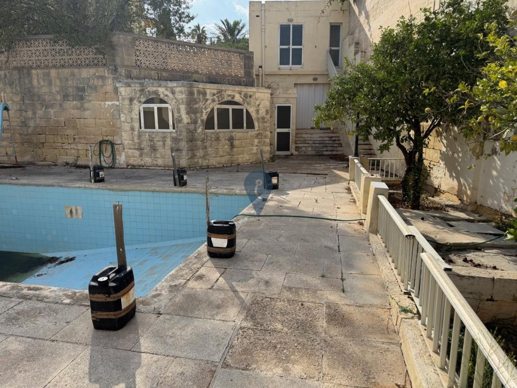 Madliena Semi Detached villa in a sought-after area, having a footprint of 1006 square meters with sea views. Property needs some TLC, but it's one can still live in it and then do the work after. The Villa has a large entrance hall, open plan sitting/dining overlooking a big terrace with sea-views, a study, a large kitchen/breakfast, a family bathroom, and a bedroom leading to the pool area. On the first floor, one finds four bedrooms large bathroom, and main en-suite, and a huge terrace again with sea views. The villa has a large outside pool area with ample size for entertaining, it also has a four-car street-level garage and a drive-in. The property is freehold and well-priced. Viewing is advised.