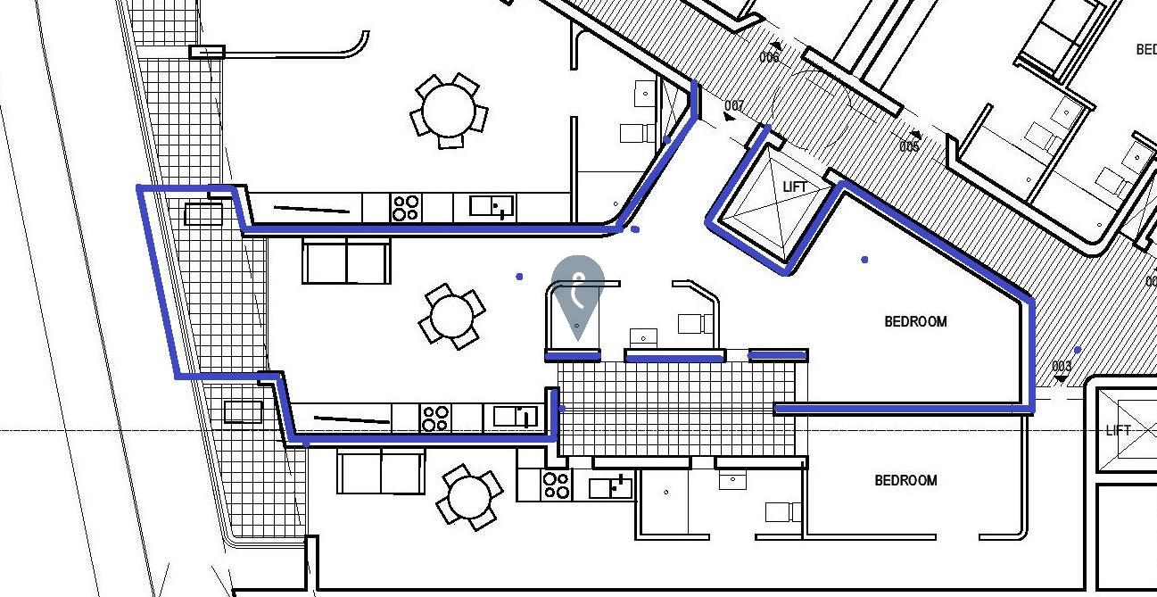 The layout comprises a bright open-plan kitchen, living and dining area, a comfortable bedroom, and a main bathroom. The property is served with two lifts and will be delivered fully finished, excluding internal doors and bathrooms, allowing the buyer to personalise the final touches.