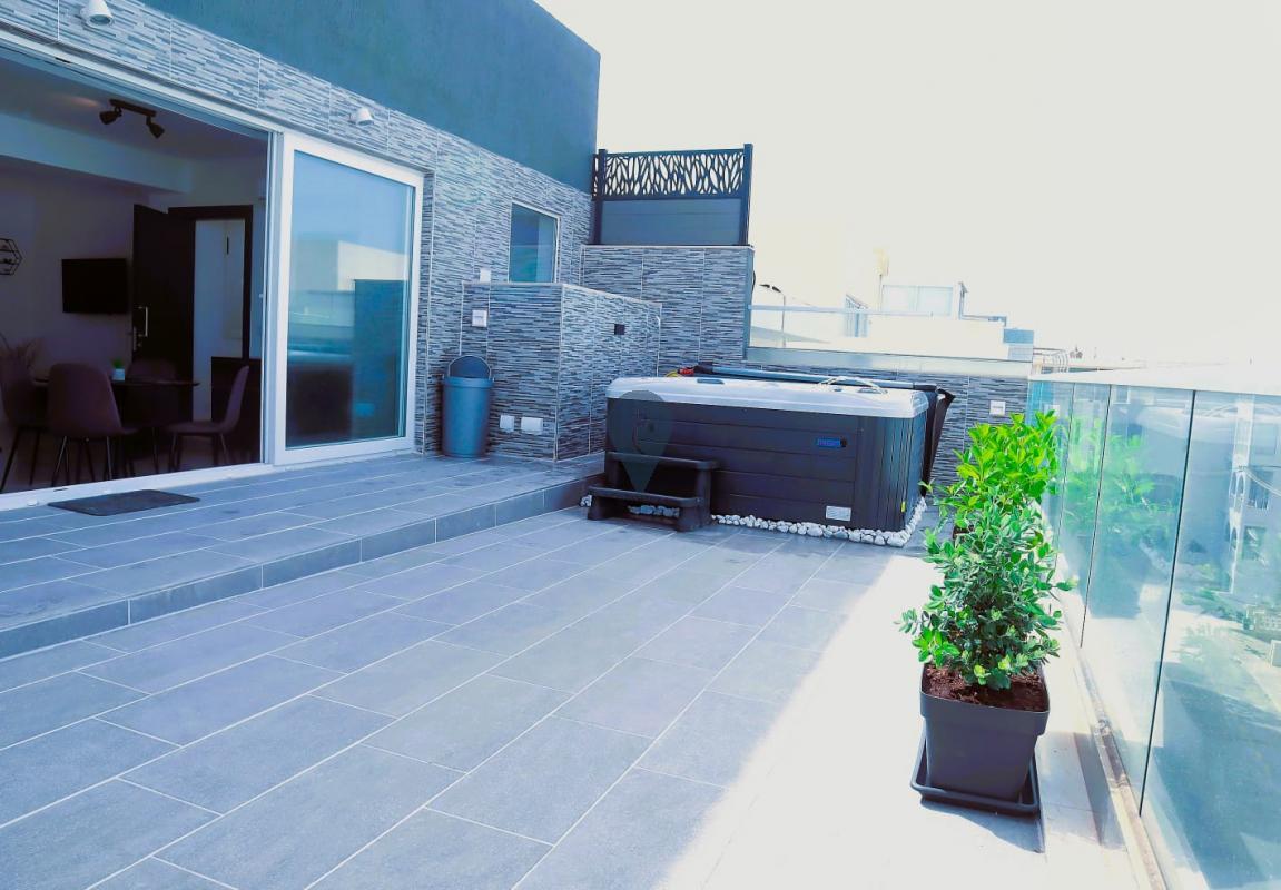 One two-bedroom penthouse with two bathrooms (one en-suite) and a large outdoor entertaining area with a jacuzzi.