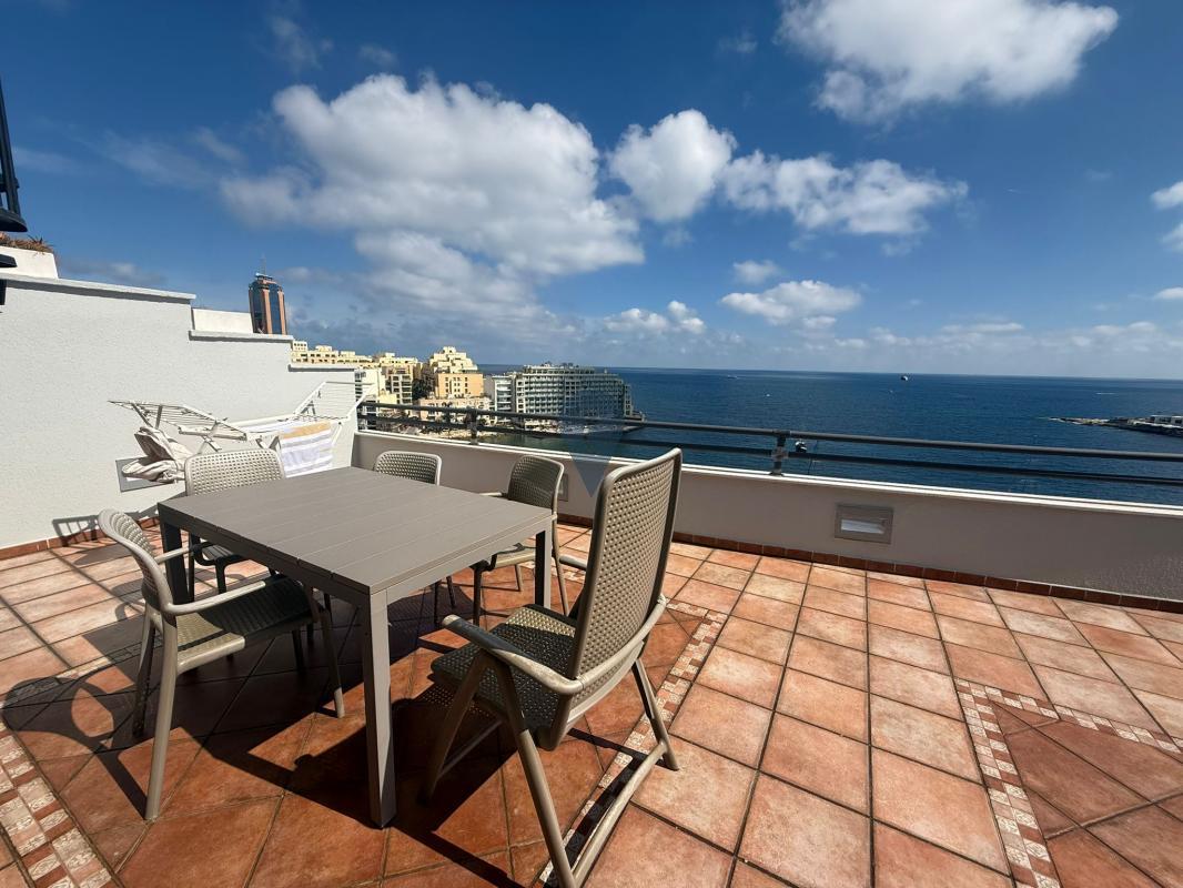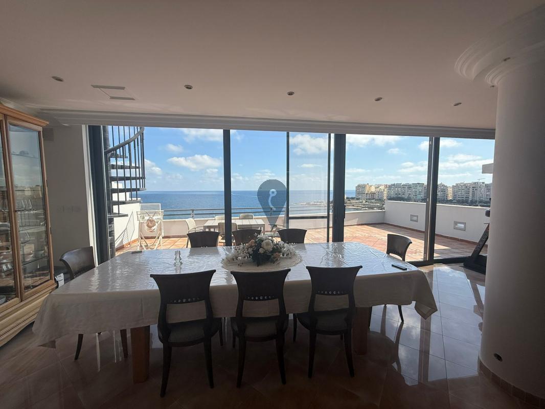 ST JULIAN'S - This stunning three-bedroom, two-bathroom penthouse, located on the coveted St Julian’s seafront, offers a truly exceptional living experience. With 229 sqm of internal space and an expansive 43 sqm terrace, the apartment is flooded with natural light, creating a bright and airy atmosphere throughout. The large terrace provides a perfect spot for outdoor entertaining, while the property also includes airspace, offering potential for future development. Being offered fully furnished, this modern penthouse combines comfort, style, and convenience with breathtaking sea views, making it a rare opportunity for those seeking a luxurious, turnkey home by the water.