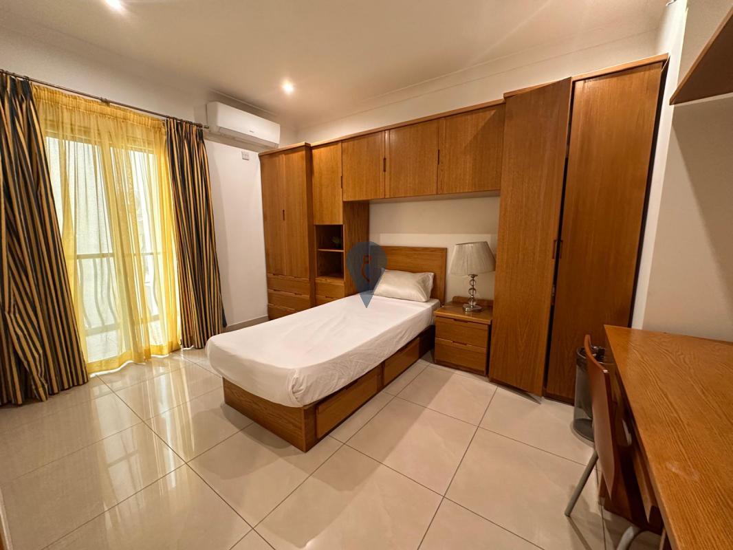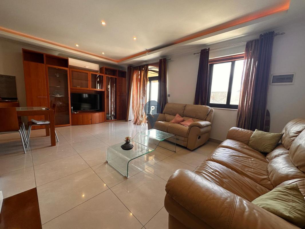 A bright and spacious first-floor apartment offering comfort and convenience in a sought-after location. The property comprises three double bedrooms, including a main bedroom with an en suite, two bathrooms, and a separate laundry room. The open-plan living area features a fitted kitchen and leads to front and back balconies, enjoying south-facing sea views. Fully air-conditioned and it's being offered fully furnished, this apartment is ready to move into. Freehold.