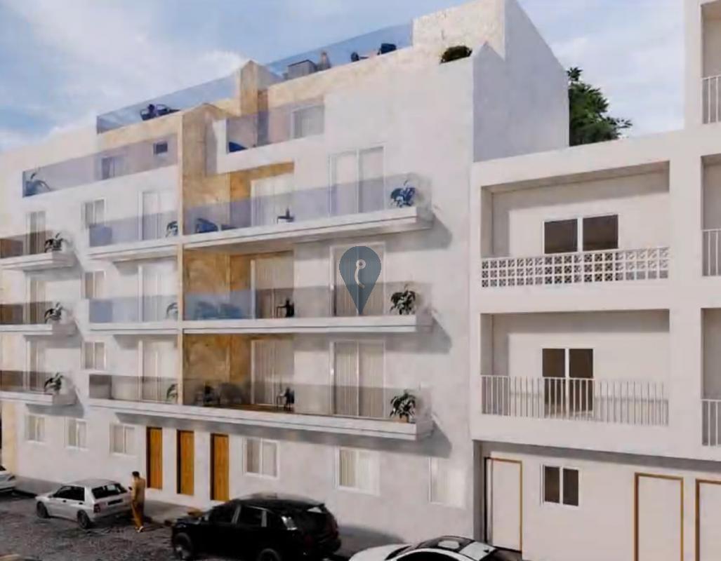 MOSTA - In the heart of Mosta, one will find this brand new second-floor apartment. This consists of an open plan kitchen/living/dining leading to a front terrace, three double bedrooms all with their private outdoor area, two bathrooms, and a box room/washroom. This property is in a smart block of just two residential units per floor with a lift from the ground floor, and includes interconnected optional garages at an extra cost. The block is to be built in shell form by June/26 and semi-finished by January/27.