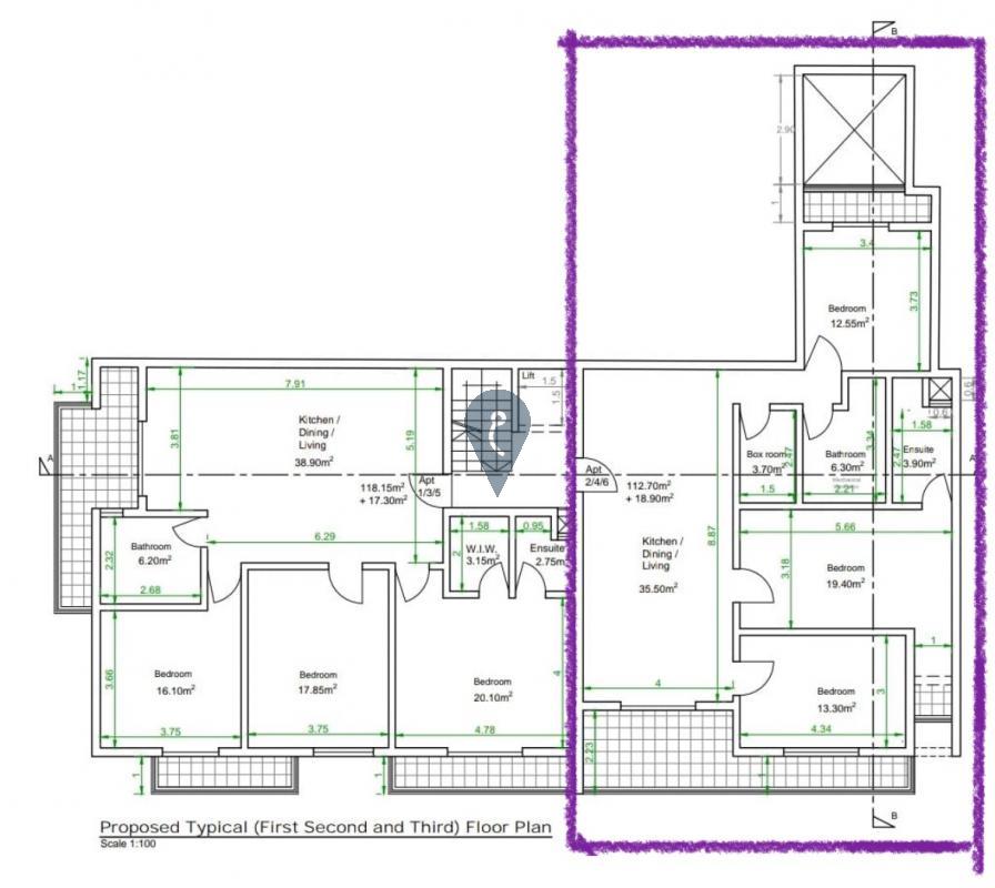 MOSTA - In the heart of Mosta, one will find this brand new third-floor apartment. This consists of an open plan kitchen/living/dining leading to a front terrace, three double bedrooms all with their private outdoor area, two bathrooms, and a box room/washroom. This property is in a smart block of just two residential units per floor with a lift from the ground floor, and includes interconnected optional garages at an extra cost. The block is to be built in shell form by June/26 and semi-finished by January/27.