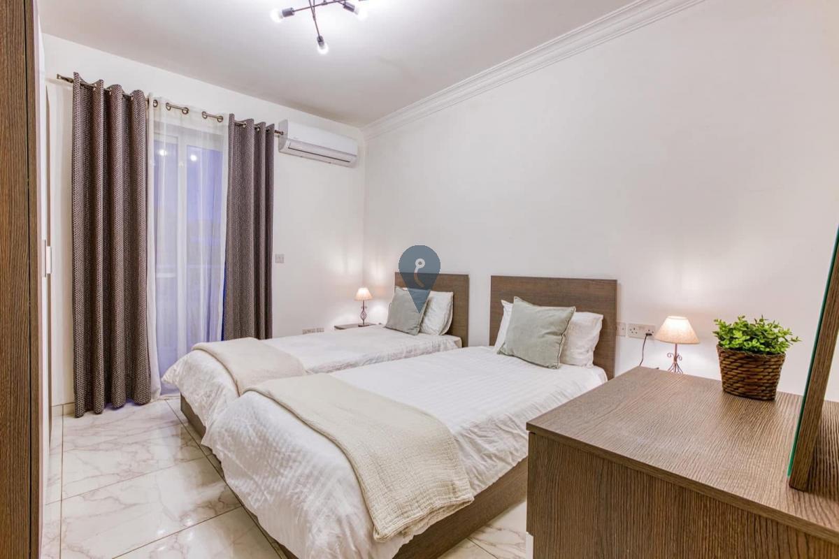ST JULIAN'S- Beautifully furnished three-bedroom apartment in the heart of St Julian’s, just an eight-minute walk from Balluta and Spinola Bay. Situated on the fifth floor with lift access, this fully furnished home features two bathrooms (shower and bathtub) and two balconies with valley views. The apartment is fully air-conditioned, equipped with blackout curtains in all rooms, and conveniently located just three minutes from shops.