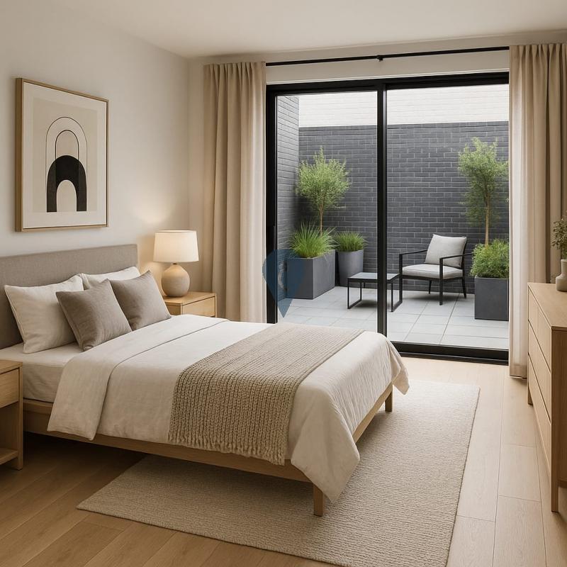 This spacious ground-floor maisonette offers a well-planned open-plan kitchen, living and dining area, three bedrooms, and a main bathroom. A private backyard provides valuable outdoor space, while the step-free layout and generous proportions make it suitable for use by people with disabilities. Optional garages are available for added convenience.
