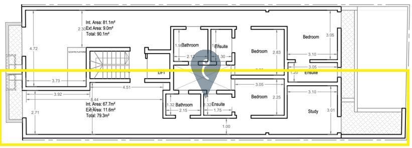 PIETA – Grab this opportunity to acquire a first-floor apartment forming part of a new, smart block. This apartment has a total area of 79.3 sqm (including 11.6 sqm of outdoor space) and is being offered fully finished, including bathrooms and internal doors, with completion expected by July 2026. The layout comprises an open-plan kitchen, living, and dining area with a front balcony, a main bathroom, a double bedroom with an en-suite, and a study that can be used as a spare bedroom, complemented by a back balcony. Ideal as both a rental investment and a residence. Freehold. Contact us for more information or to schedule a viewing.
