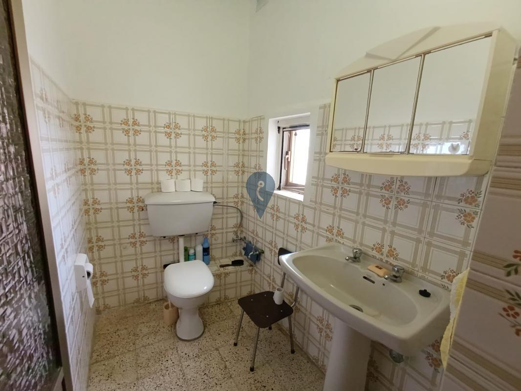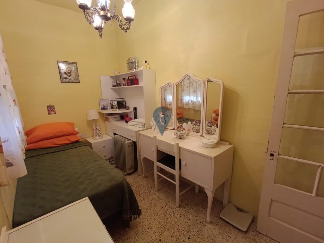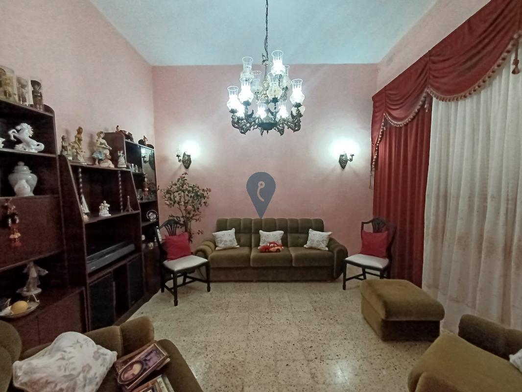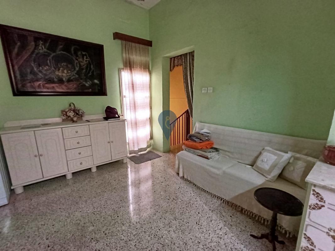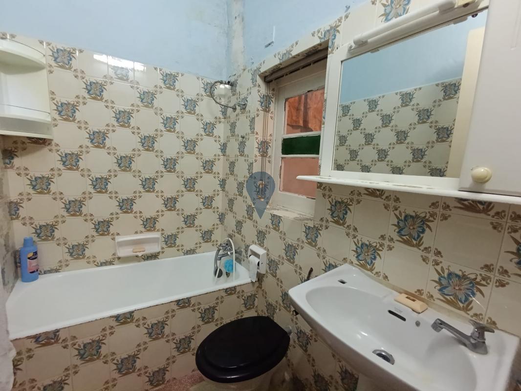 This well-preserved home welcomes you with an entrance hall leading to a sitting room, a bedroom, and a bathroom overlooking an internal yard. A traditional staircase guides you to the first floor, where you will find another bedroom with an internal yard view, a main bedroom with a balcony facing the street, and a bright kitchen/living/dining area also enjoying a street-facing balcony.