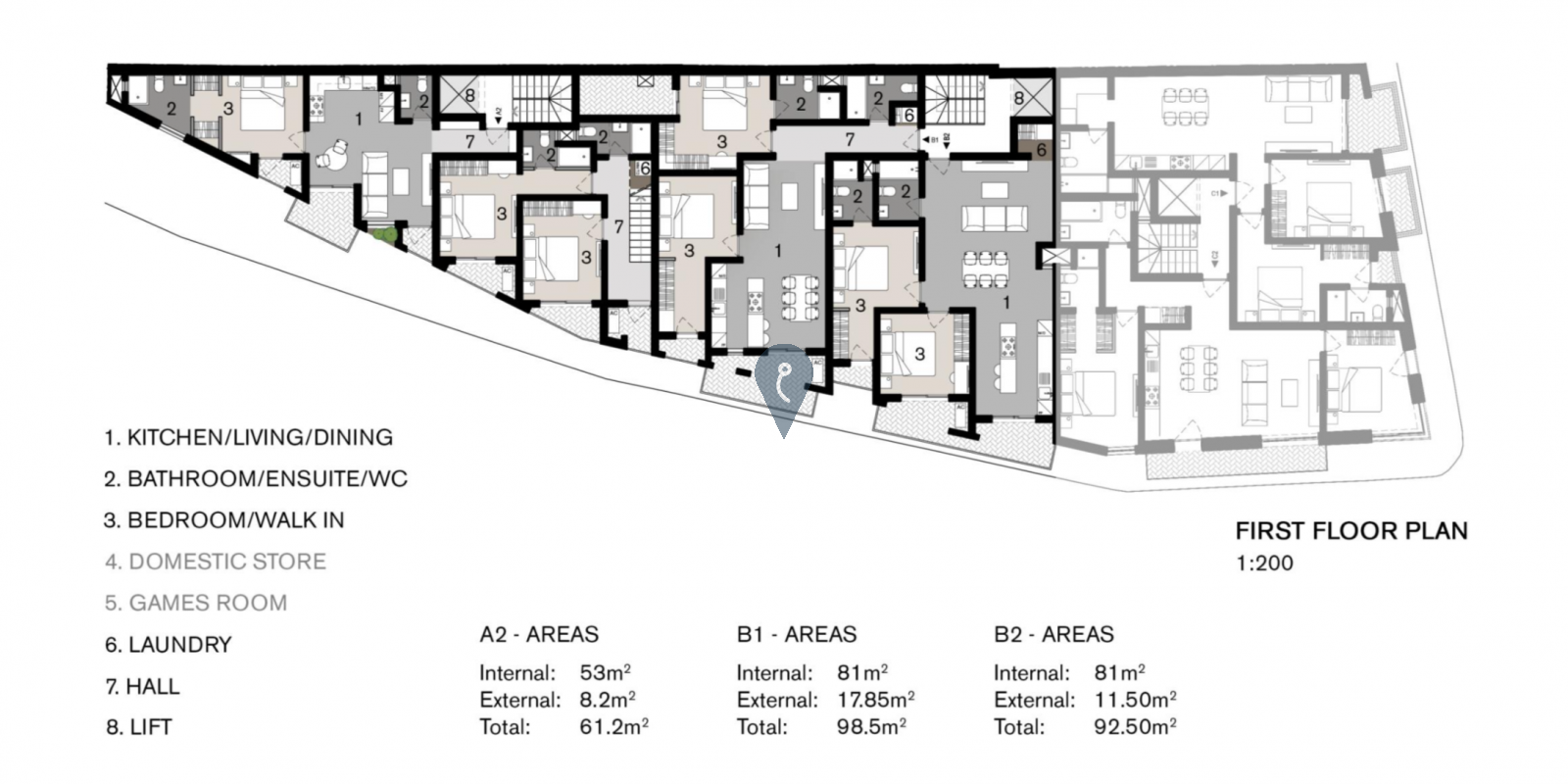 Nestled in the heart of the village, this brand-new, smart development is set to commence construction in January 2026, with completion estimated for December 2027. All units are being offered fully finished, including bathrooms and doors, and come with interconnected optional garages available at an additional cost.