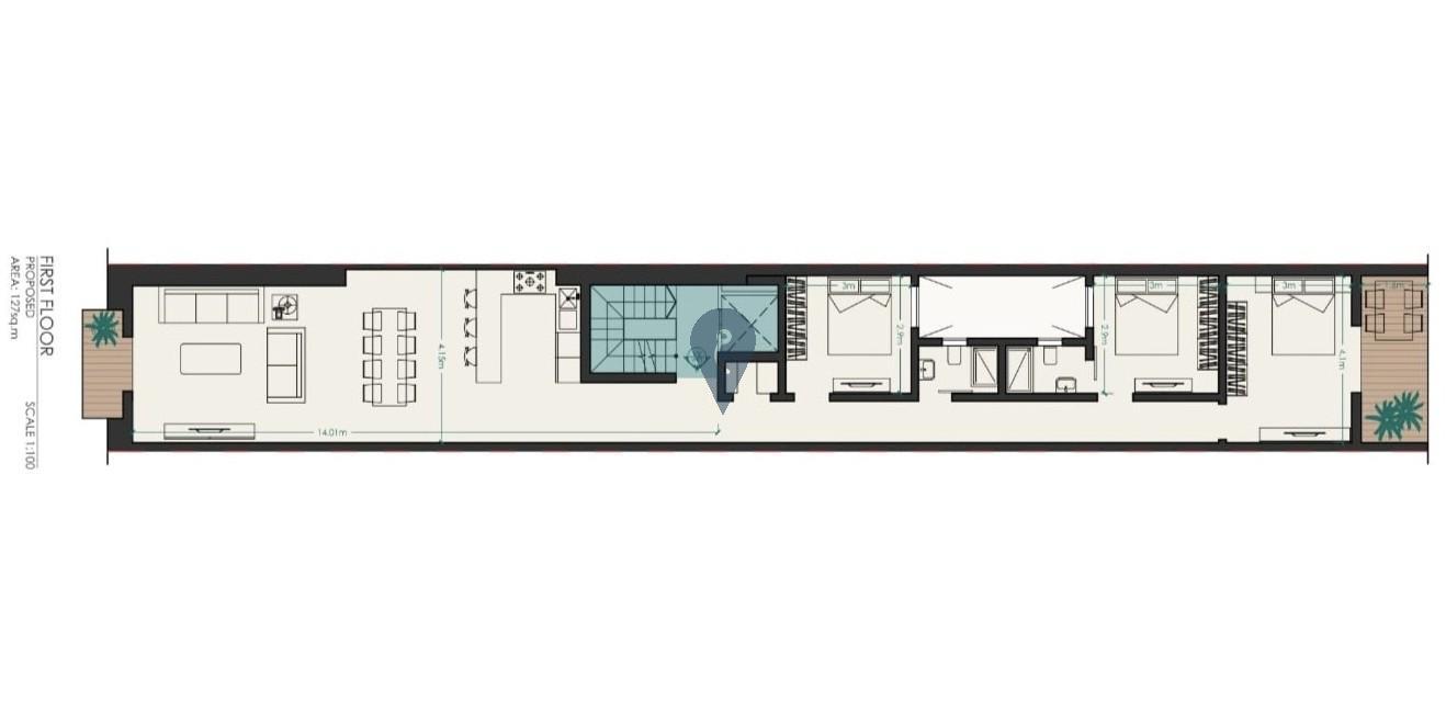 This beautifully designed second-floor apartment spans 126 square metres and offers a bright, spacious open-plan layout ideal for modern living. It includes three comfortable bedrooms, with the main bedroom featuring its own ensuite. The property also benefits from both front and back terraces, perfect for outdoor relaxation, and a practical laundry or box room for added convenience.