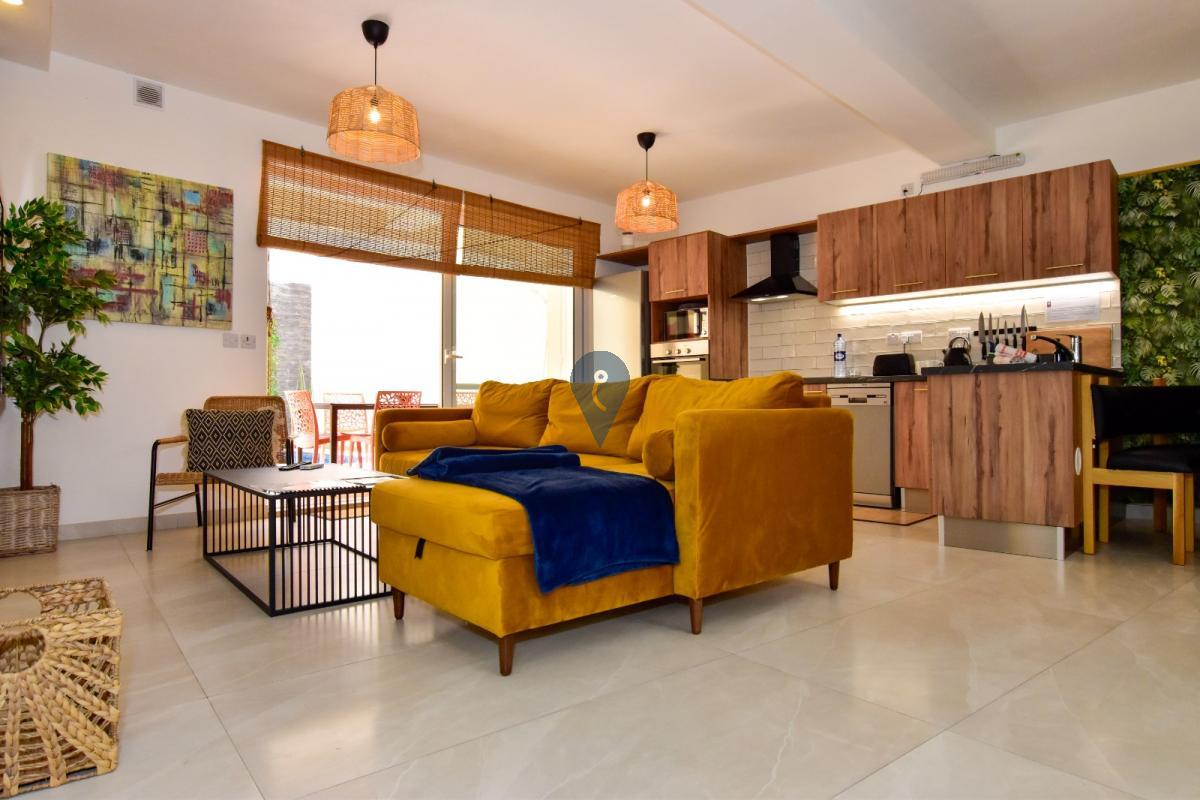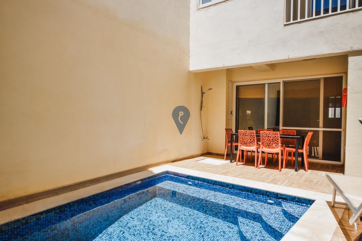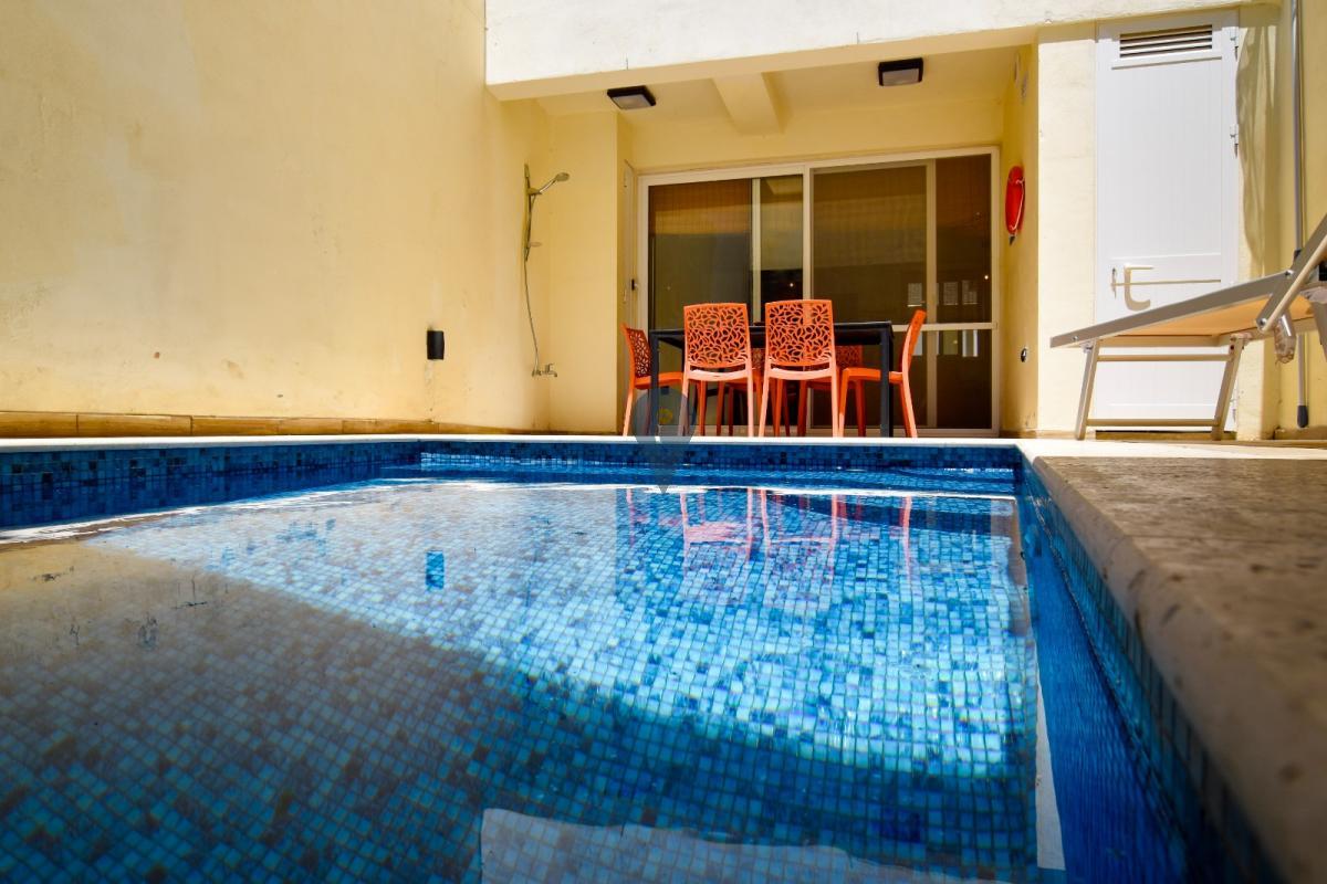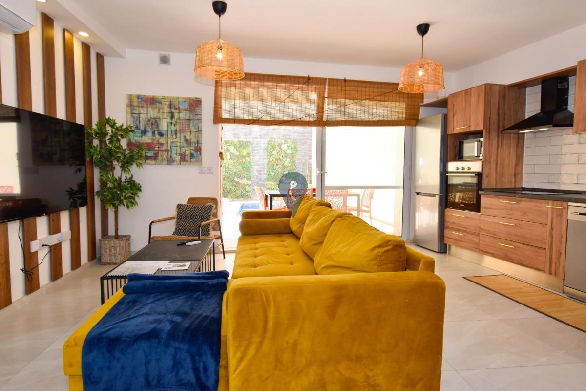NADUR - Large, modern, fully-furnished ground-floor maisonette with private pool in a new block of only four units overlooking Ramla Valley. Open-plan kitchen/dining/living area overlooking private swimming pool, two bedrooms, a study/third bedroom, two bathrooms (one ensuite), plus internal yard. Fully air-conditioned and designed for comfort and convenience, it is great both as a family home ready to move into, or as a rental investment, with MTA permits already in hand for short lets. Not to be missed!