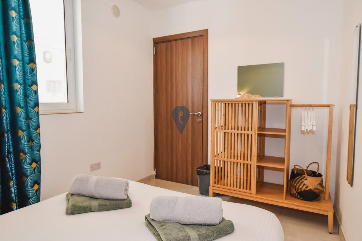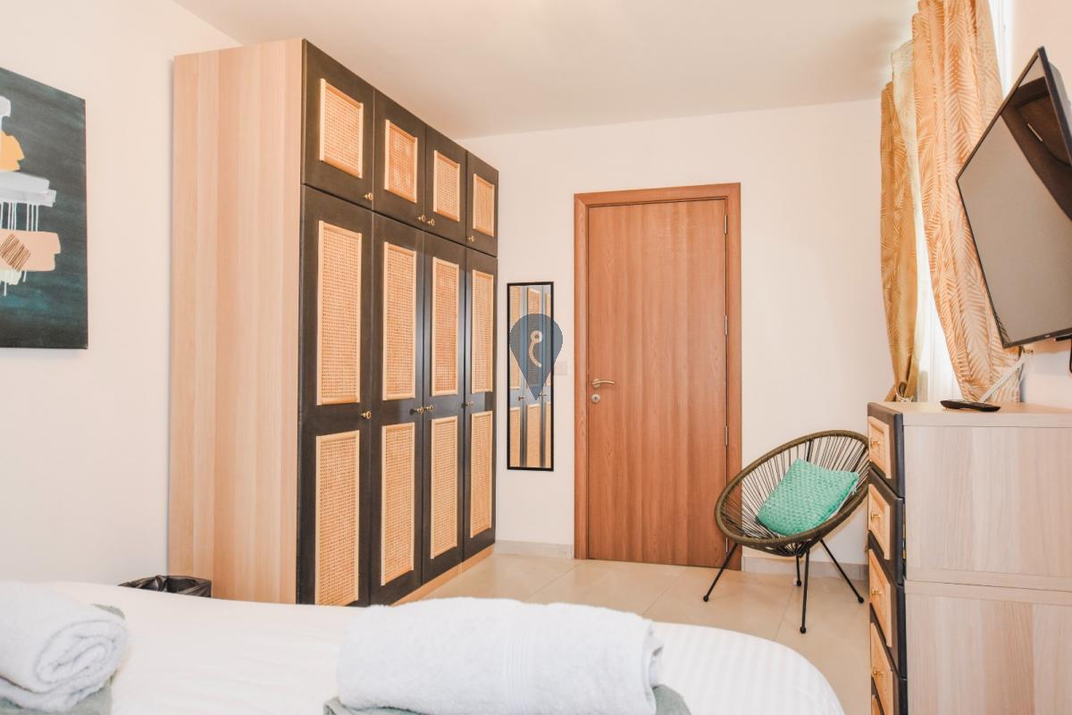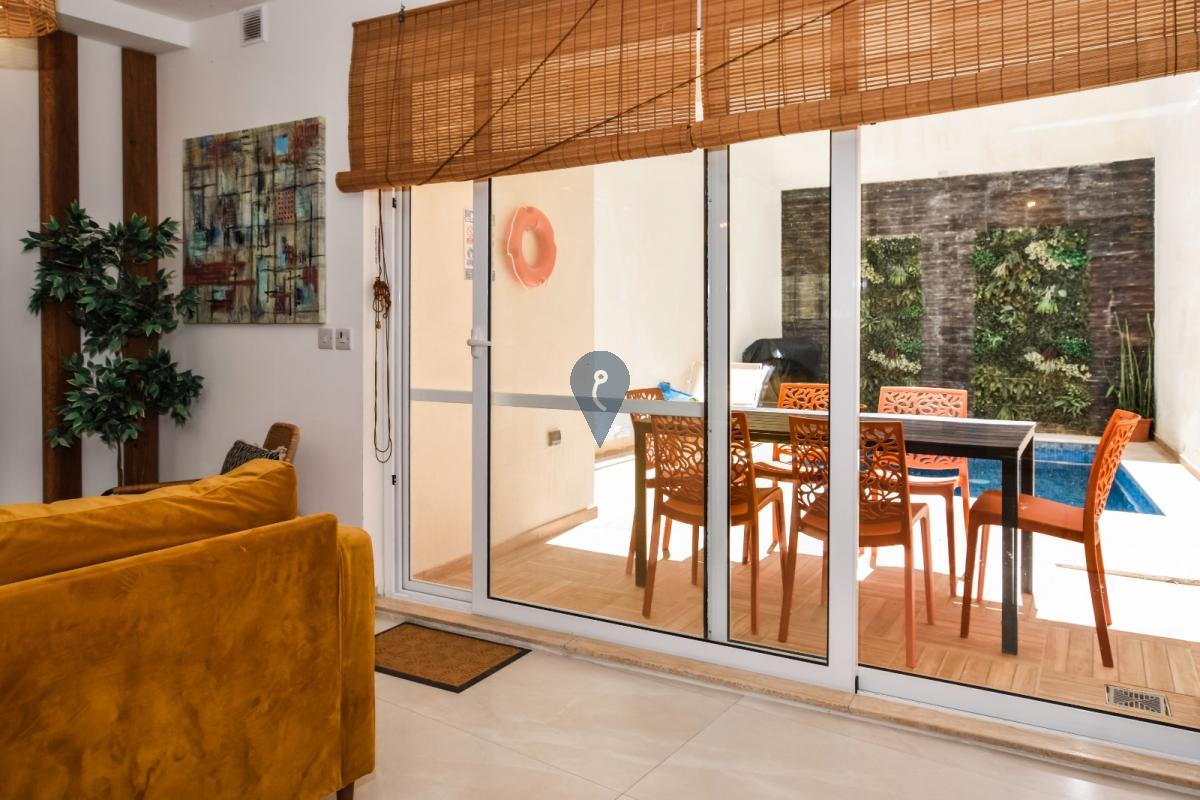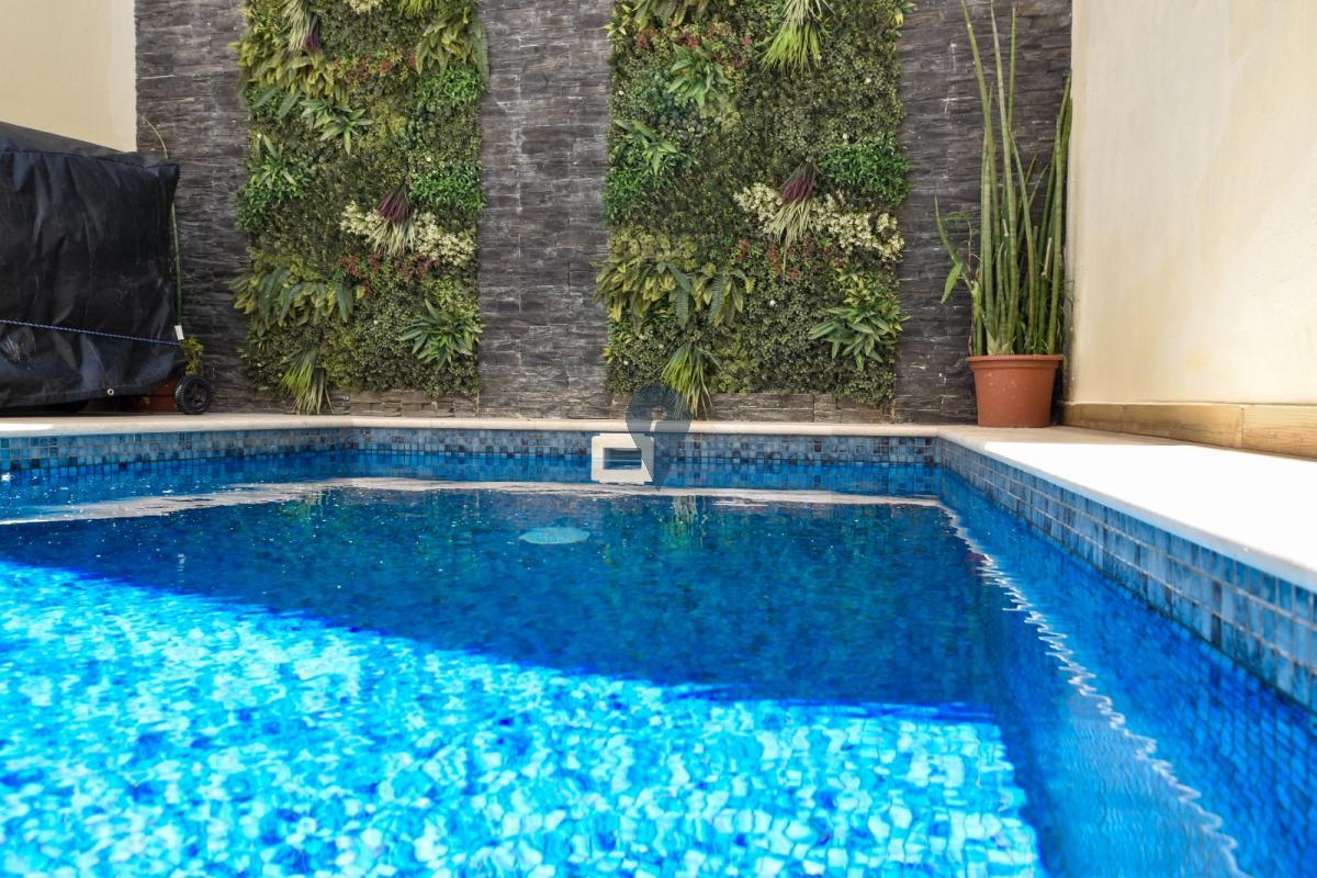 NADUR - Large, modern, fully-furnished ground-floor maisonette with private pool in a new block of only four units overlooking Ramla Valley. Open-plan kitchen/dining/living area overlooking private swimming pool, two bedrooms, a study/third bedroom, two bathrooms (one ensuite), plus internal yard. Fully air-conditioned and designed for comfort and convenience, it is great both as a family home ready to move into, or as a rental investment, with MTA permits already in hand for short lets. Not to be missed!