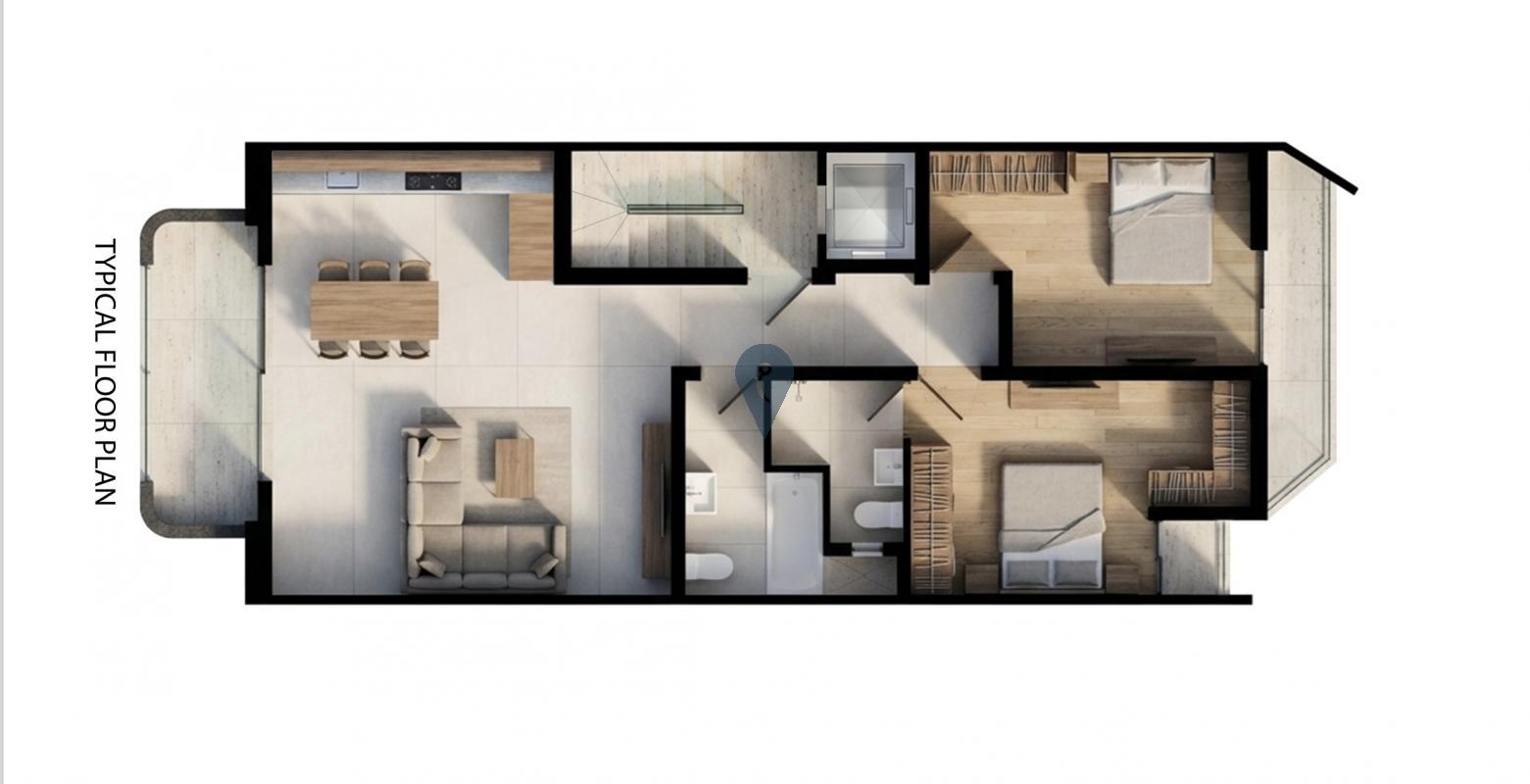 Available are two-bedroom apartments, being sold in semi-finished state, ideal for those who wish to complete their home to their own style and preference.