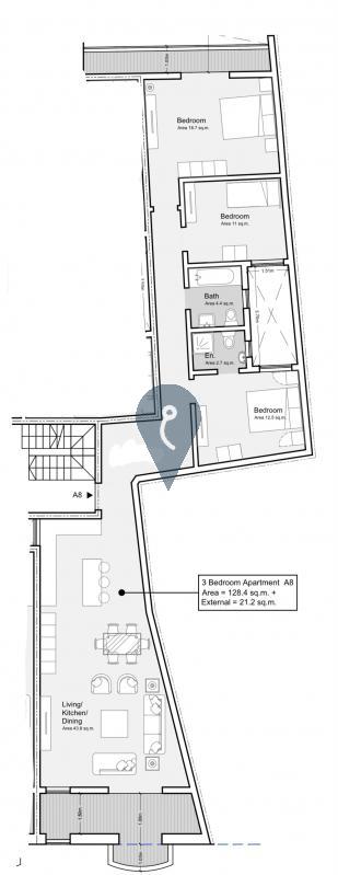 BALZAN - Introducing a newly built third-floor apartment in the heart of Balzan, offering a generous 150sqm of internal and external space. This property features a bright 43sqm open-plan kitchen/living/dining area and front terrace and back balcony. The layout includes three bedrooms, a master bedroom with an ensuite, + a main bathroom. Being offered finished excluding bathrooms and doors, this home is perfect for buyers looking to add their own final touches. Completion is set for February 2026, making it an excellent opportunity in one of Malta’s most sought-after central locations.
