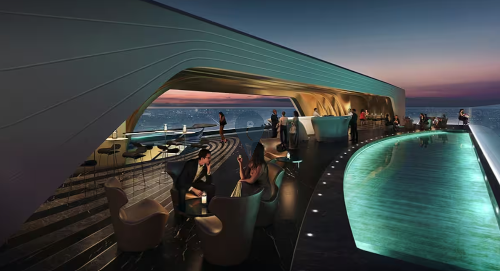 Residents enjoy exclusive access to the five-star amenities of Mercury Towers, including concierge services, a sky pool, fitness facilities, fine dining, and direct connection to a vibrant lifestyle destination below.