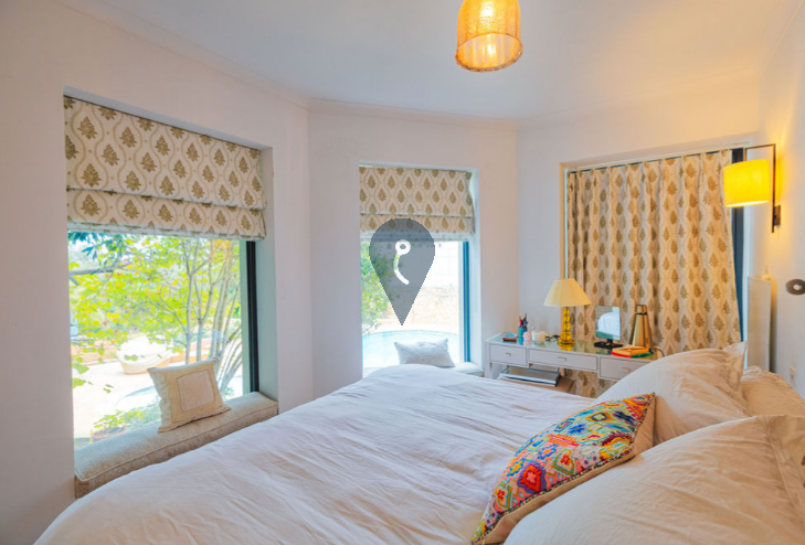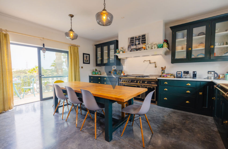 Designed across two levels, the villa features four generously sized double bedrooms on the ground floor, each with its own en-suite bathroom, providing comfort and convenience for family and guests alike. The upper level is centred around an elegant circular landing that leads to a spacious open-plan living and dining area—perfect for both everyday living and sophisticated entertaining. A separate kitchen opens onto a front terrace overlooking the pool and landscaped gardens, creating an idyllic setting for morning coffee or evening unwinding. A guest bathroom and a large, private study complete the upper floor, offering the ideal retreat for work or quiet reading.