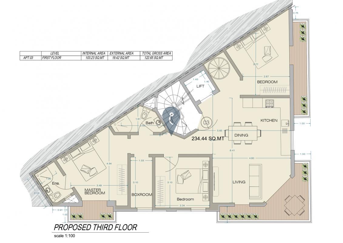 A stunning duplex corner penthouse boasting three balconies and three double bedrooms, including a main bedroom with an ensuite. The layout features a spacious open-plan kitchen, living, and dining area, along with a boxroom. Internal stairs lead to the roof, offering an exceptional 100sqm outdoor space with a large pool and deck area—perfect for entertaining or relaxing. An outstanding property not to be missed.