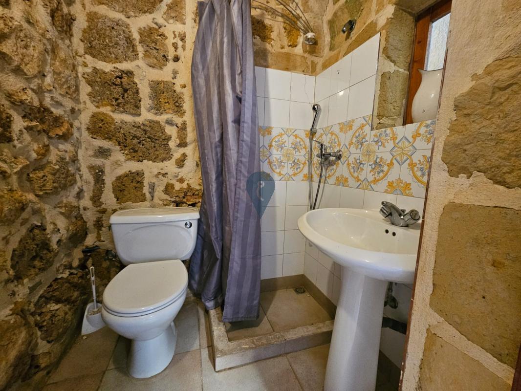 A stunning traditional stone spiral staircase leads to the upper floor, which features two large bedrooms, both AC equipped and each with its own ensuite. These rooms can also be accessed via an exterior traditional staircase, adding to the property’s authentic charm and practicality.