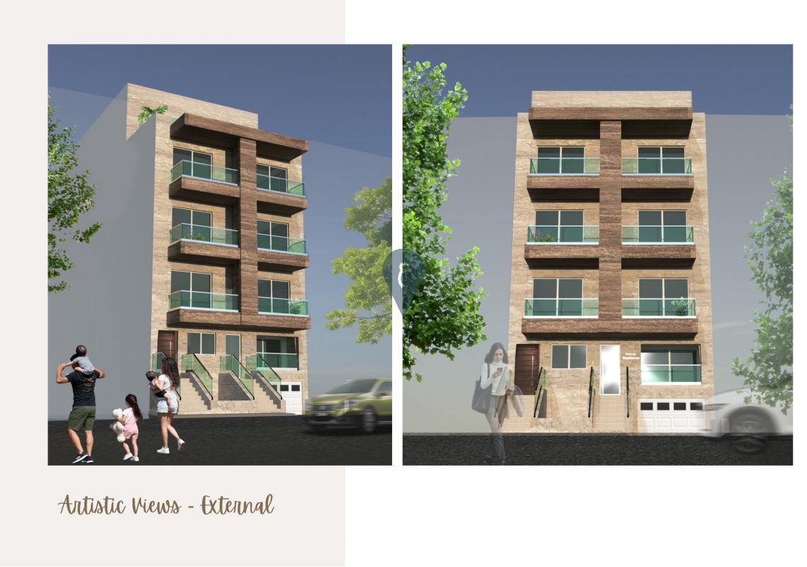 A two-car semi-basement garage + store is being offered in a newly built block, which is also offering a three-bedroom maisonette, seven two-bedroom apartments, and a three-bedroom penthouse, all finished to high standards. Units feature polished gres tiles with skirting, white aluminium double-glazed apertures, glass balconies, a Travertine facade, and white-painted interiors.