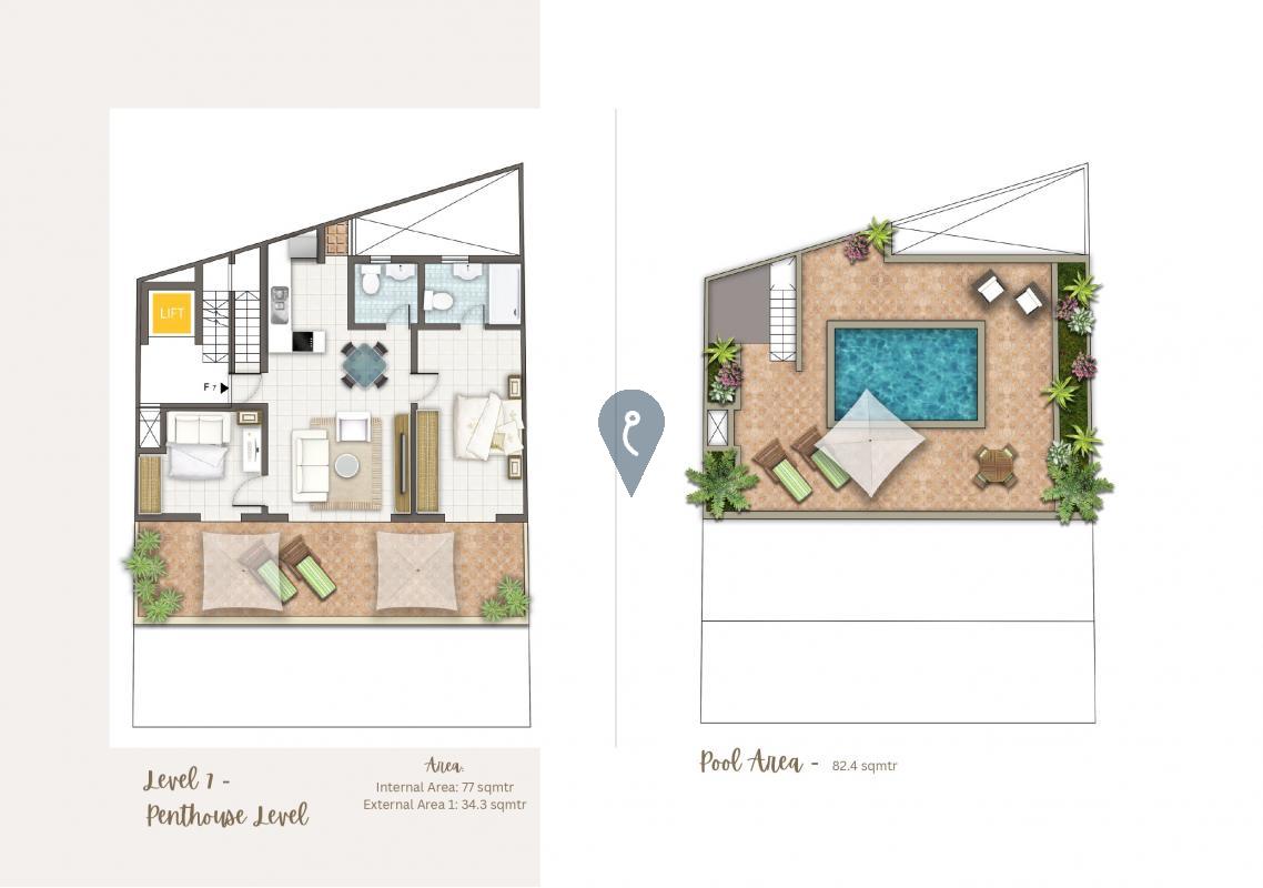 Each property will feature an intercom with a camera, AAA+ inverter air conditioners with Wi-Fi in the bedrooms and open-plan area, and a 300-litre roof water tank. Electrical layouts provide 48 points for three-bedroom units and 40 points for smaller layouts, including A/C and telephone points in the bedrooms and living area. The exterior will be completed with a Travertine façade, along with full plumbing and electrical installations.