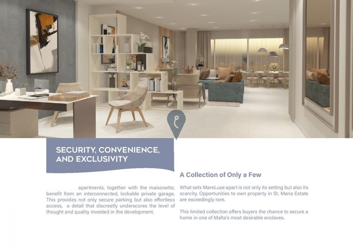 Residents benefit from the peaceful surroundings of St. Maria Estate, renowned for its privacy, greenery, and being within walking distance to Mellieħa’s sandy beaches. An interconnected, lockable private garage adds convenience and security.