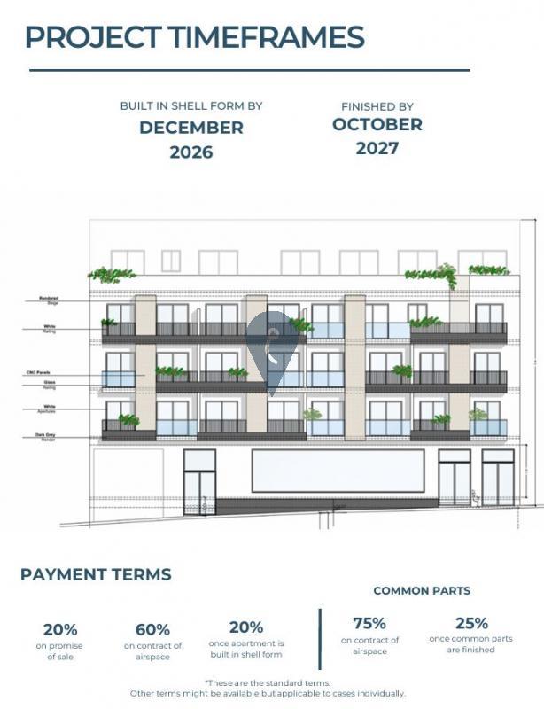 QORMI - New development - Grab this opportunity to acquire a NEW, first-floor three-bedroom apartment with a total of 136 sqm. Layout comprises of Open plan - Kitchen/Living/Dining, main bathroom, washroom, three bedrooms, two with en-suite, back and front terraces. Being offered in shell form to allow you to finish and furnish to your liking. Freehold. Contact us for more information/viewings. The project is expected to be built in shell by December 2026 and finished by October 2027.