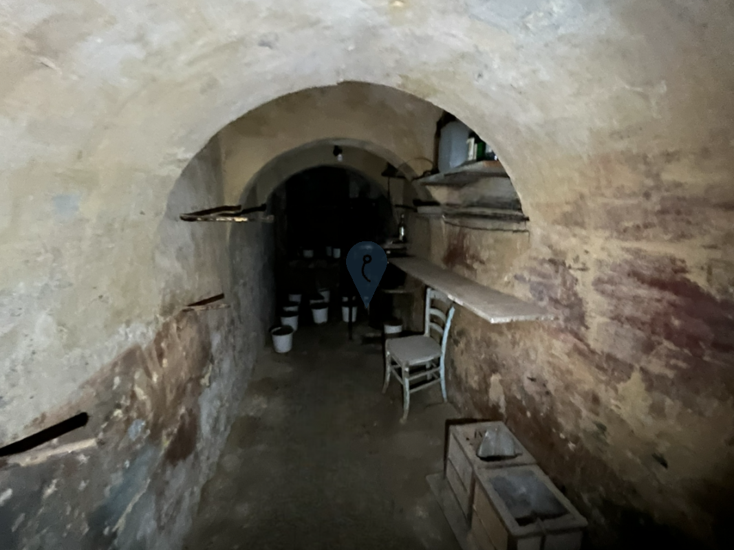 The layout offers great flexibility, with dual access points to the first floor, allowing the property to be easily split into two separate dwellings if desired. Internally, the house features a traditional entrance hallway leading to an impressive basement cellar composed of multiple rooms arranged around an internal courtyard — a unique space that lends itself perfectly to conversion into a wine cellar, spa, or leisure area.