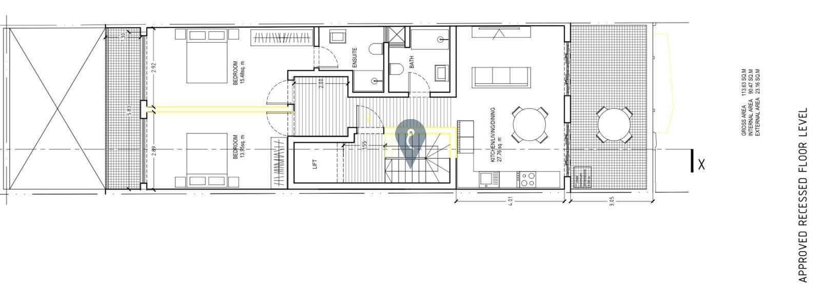 MOSTA - A very nice, bright & airy Penthouse with lovely views located opposite an ODZ area and in a very quiet residential street. When entering the apartment, one will find a bright open plan kitchen-living-dining leading out onto a terrace with ODZ views, a guest bathroom, two bedrooms, the main with an ensuite. Ready built & finished to high standards, including internal doors and bathroom. Optional garages available. Airspace is included in the price. No water tanks are placed on the roof, so no apartments will require access to the penthouse. Freehold.
