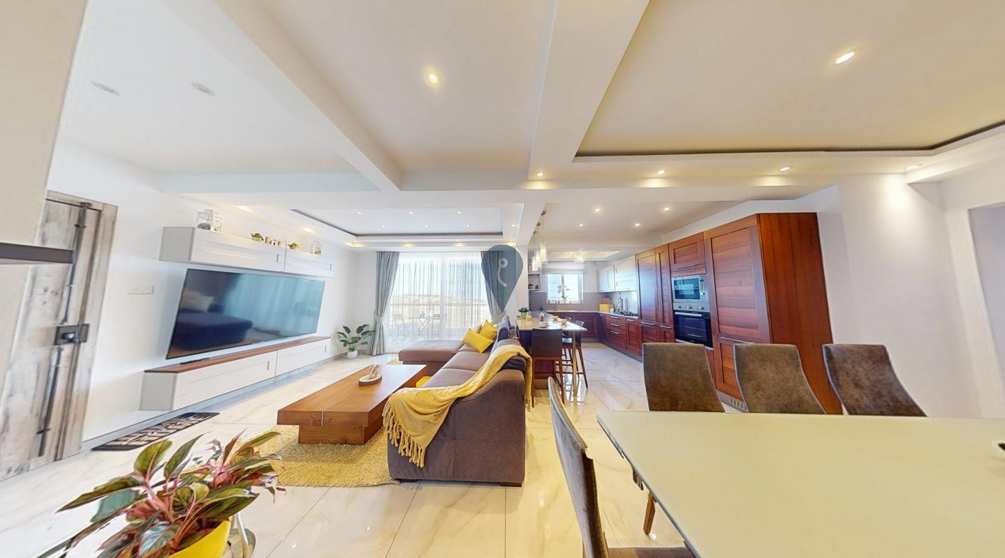 MGARR - A stunning corner duplex penthouse featuring panoramic 360° views of the sea and countryside, situated in one of the island's most sought-after and serene locations. This bright and spacious home, which comes fully furnished, seamlessly merges comfort, style, and functionality, making it move-in ready.