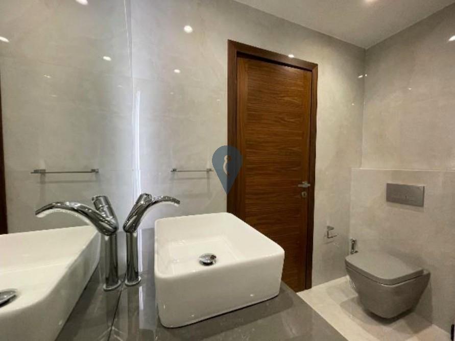 On the lower level, the villa includes a two-car garage, a gym, a cinema room, and a storage area, as well as a separate toilet for practicality.