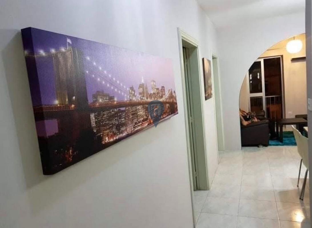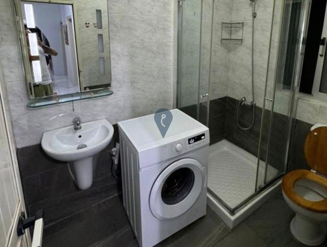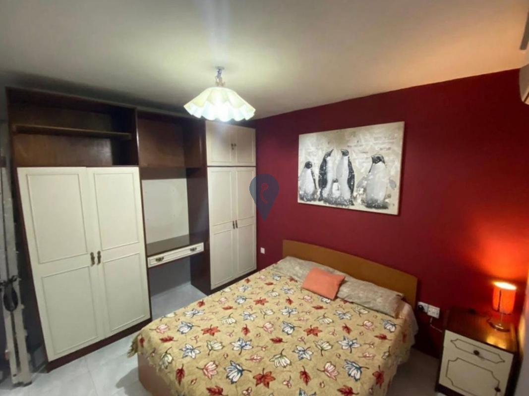 This fully furnished apartment features two bedrooms, one bathroom, and an open-plan kitchen and living area. The living room opens onto a private balcony, which also provides direct access to the main bedroom, creating a bright and airy living space.