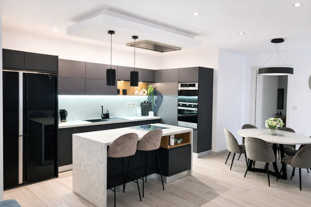 One of a kind corner apartment in Qormi. This designer-finished, fully furnished corner apartment is a rare opportunity. Set within a small, quiet block with lift, it enjoys exceptional natural light thanks to multiple balconies and a terrace. The smart layout features three spacious double bedrooms, two modern bathrooms, a box room, and a stylish kitchen–living area.