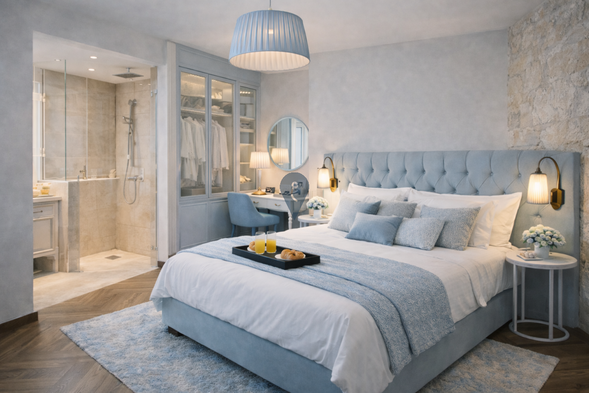 The highlight: a breathtaking roof terrace complete with a pool and lounge area, offering stunning, uninterrupted panoramas over Birgu Marina — ideal for sunset moments and premium guest experiences.
