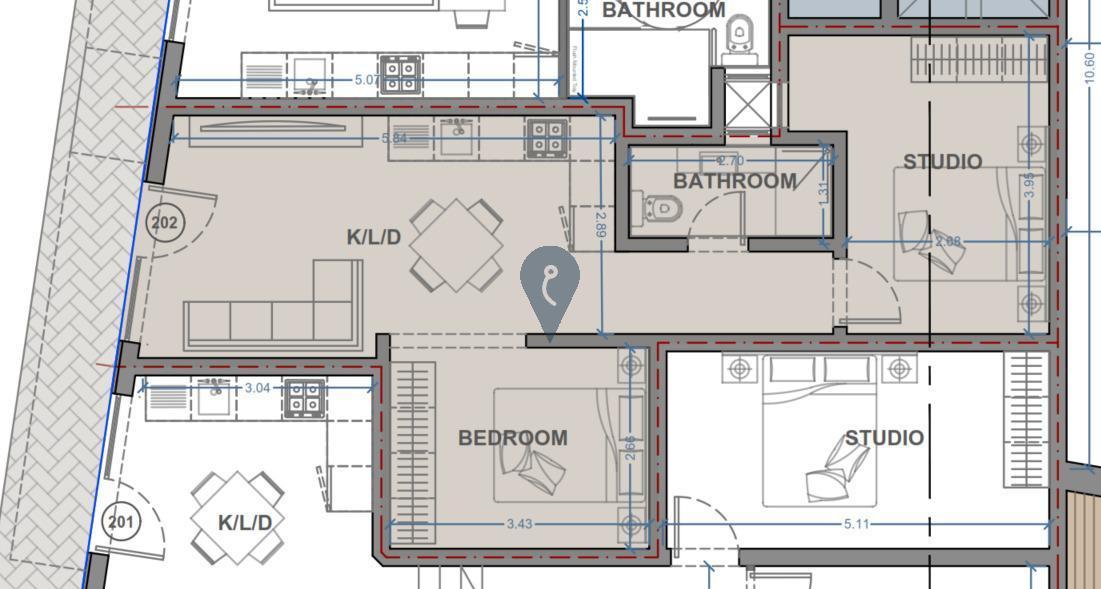 MSIDA - Squarish Msida Studio Maisonette on plan. One bedroom, study, ideal investment for rental income due to proximity to the University and Mater Dei Hospital. Completion expected by August 2027 in shell form. Close to various amenities. No condominium fees apply. It can be easily rented as a two-bedroom with a circa 6% ROI.