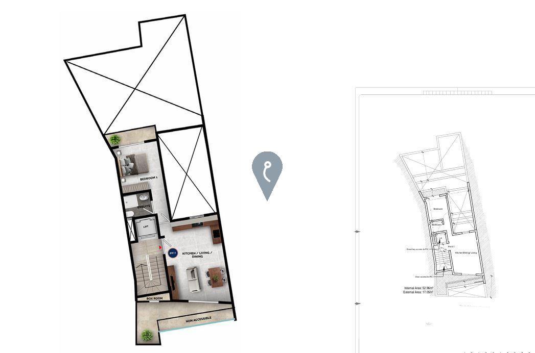 MSIDA - One-bedroom penthouse in Msida, located in a new, upcoming residential development just a few minutes’ walk from Lidl in Santa Venera. The building consists of five floors only, with a limited number of units, ensuring comfort and privacy.