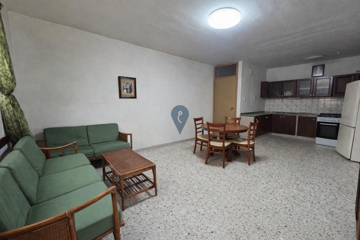 BUGIBBA - Comes this corner first-floor furnished apartment, having dual access, either from the block or from the main entrance in the street, like a maisonette, consisting of an open-plan kitchen, dining, and living area, one bathroom, and two bedrooms, one main and a spare bedroom. The place is being offered as it is, furnished, and it's unconverted. The door from the side of the block is blocked, and they don't use it, but still have to pay the condominium fees yearly, which vary between 200 and 300 euros yearly. Also, there is a private ground rent to be paid of 9euros per year, which can be paid and comes freehold. The apartment is about 80sqm and is only two minutes by walk from Bugibba Piazza andthe seafront.