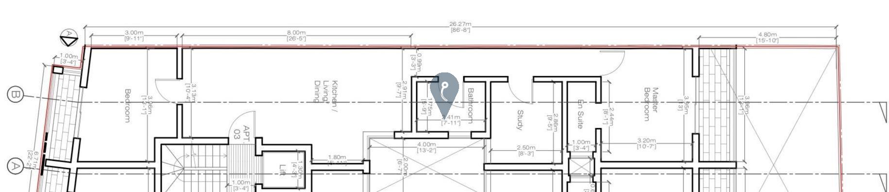 MSIDA - Fourth-floor apartment with a layout comprising an open-plan kitchen, living, dining area, main bathroom, a main bedroom with an ensuite having access to a balcony, another bedroom leading to a front balcony, and a study. The property will be offered fully finished, including bathrooms and doors. Contact the agent for further info