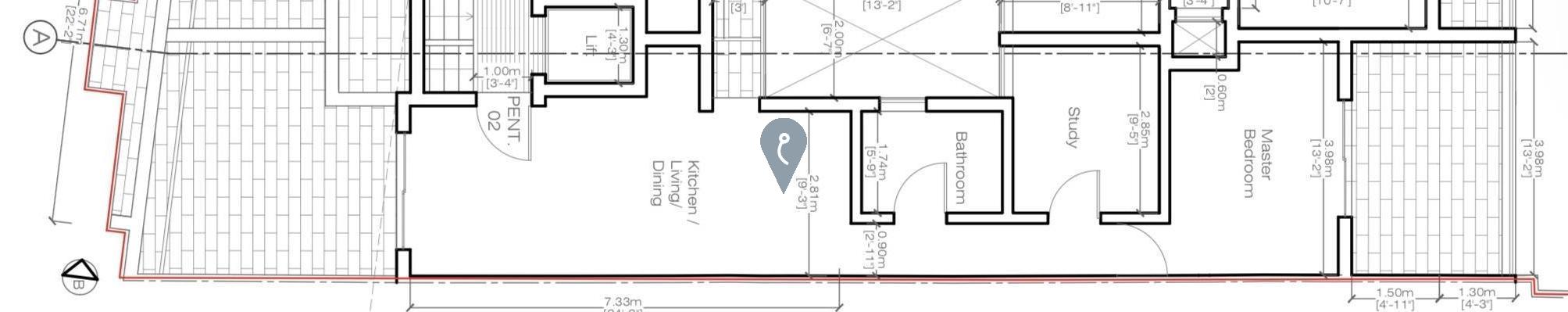MSIDA - Sixth-floor penthouse with a layout comprising an open-plan kitchen, living, dining area leading to a front terrace, main bathroom, a main bedroom leading to a spacious back terrace, and a study. The property will be offered fully finished, including bathrooms and doors. Contact the agent for further info