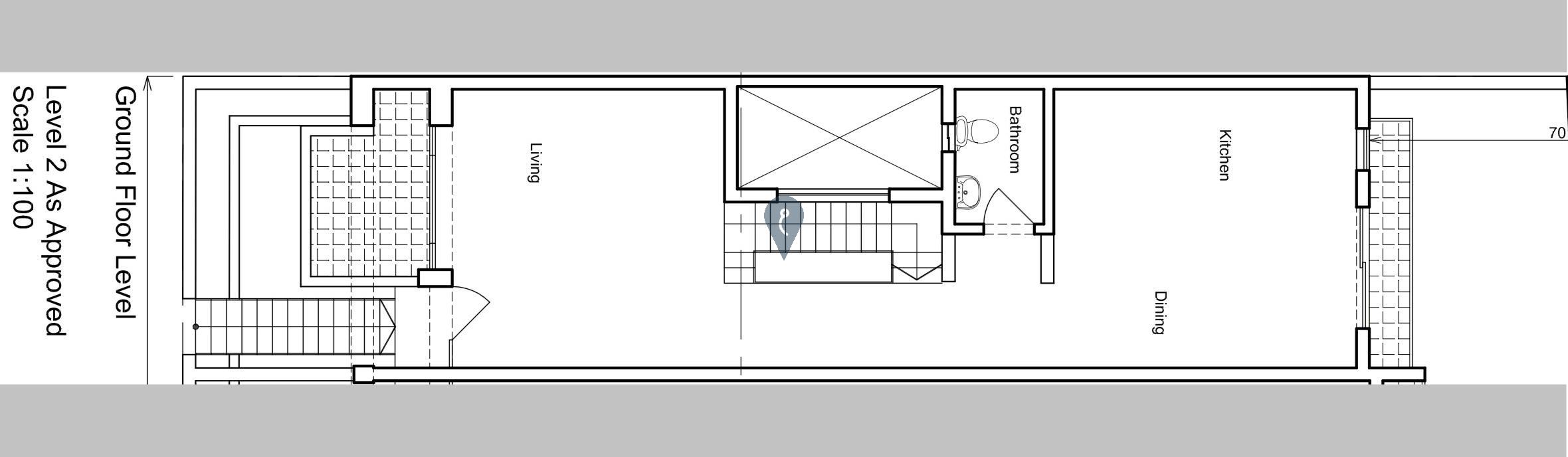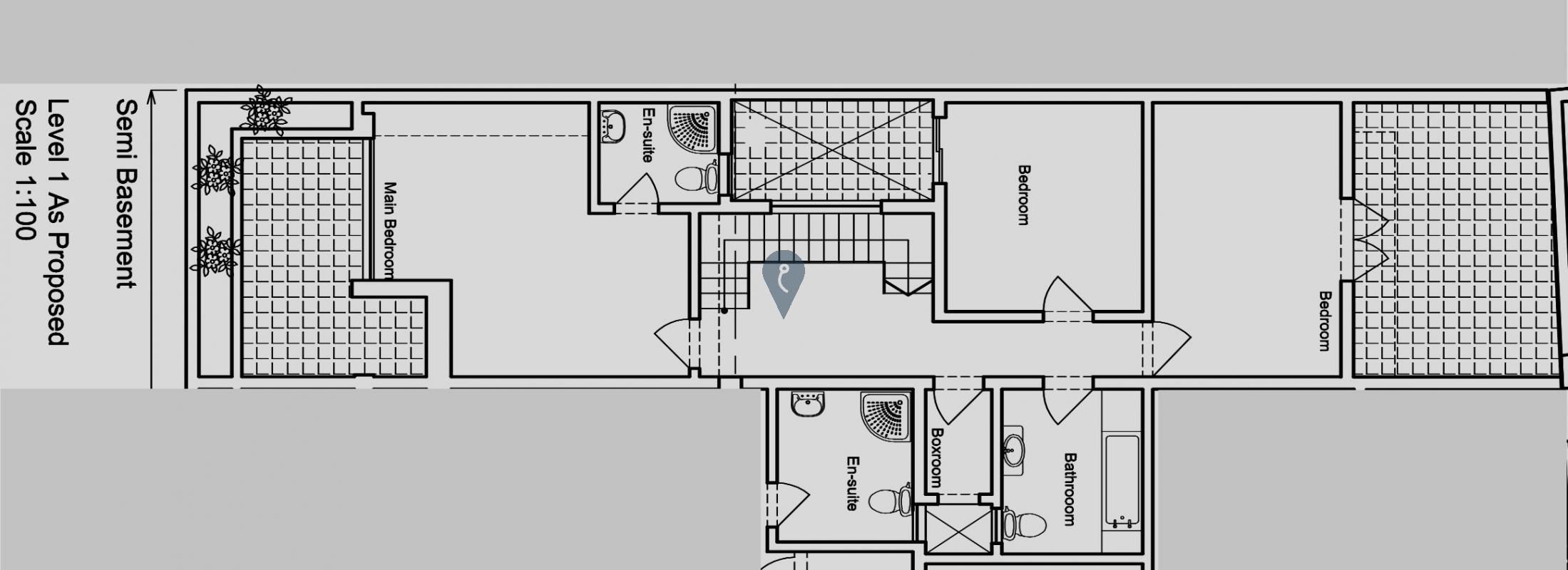 The property is laid out over two levels, with an elevated first floor housing the main living areas, and the bedrooms located at a semi-basement level, offering privacy and a comfortable separation between living and sleeping spaces.