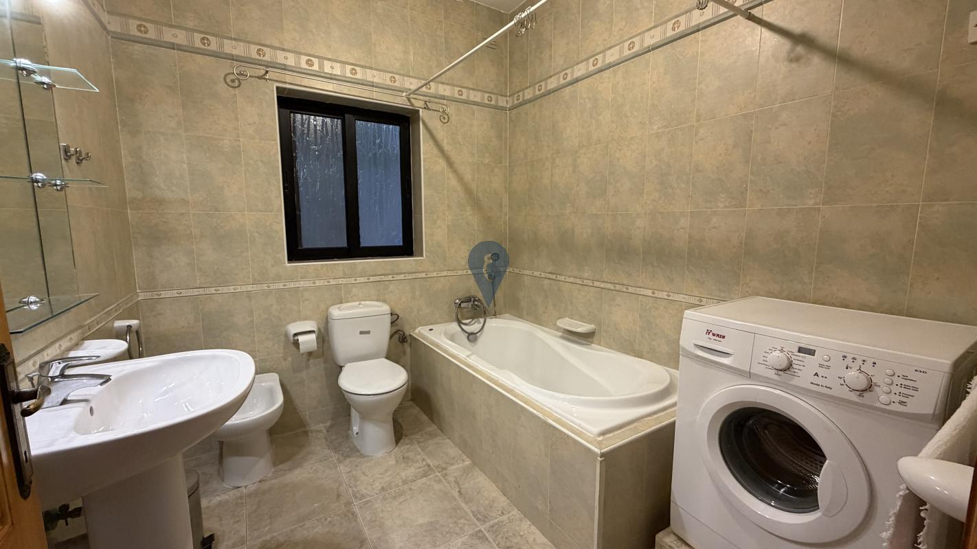The apartment comprises an open-plan kitchen, living, and dining area, fully equipped with all essential appliances, including a washing machine, LCD TV, air conditioning, and other everyday necessities. Accommodation includes three bedrooms and two bathrooms: a main double bedroom with an en-suite, a second bedroom with a double bed, and a third double bedroom featuring a walk-in wardrobe and a box room, and the main bathroom serves the remaining rooms.