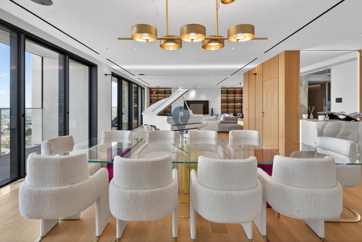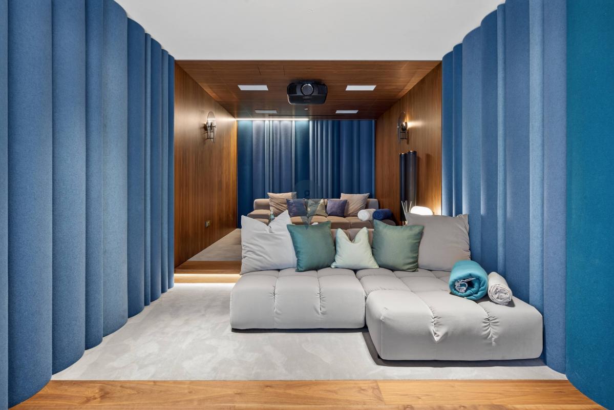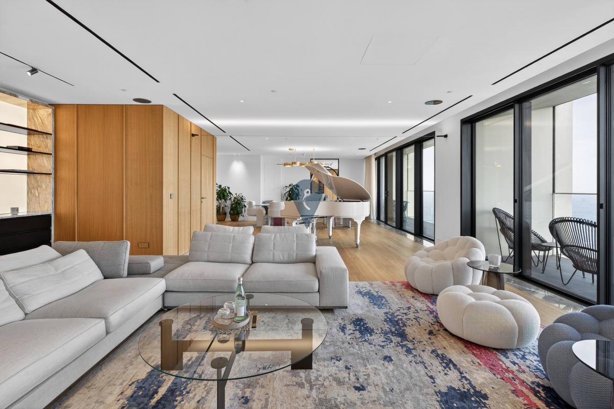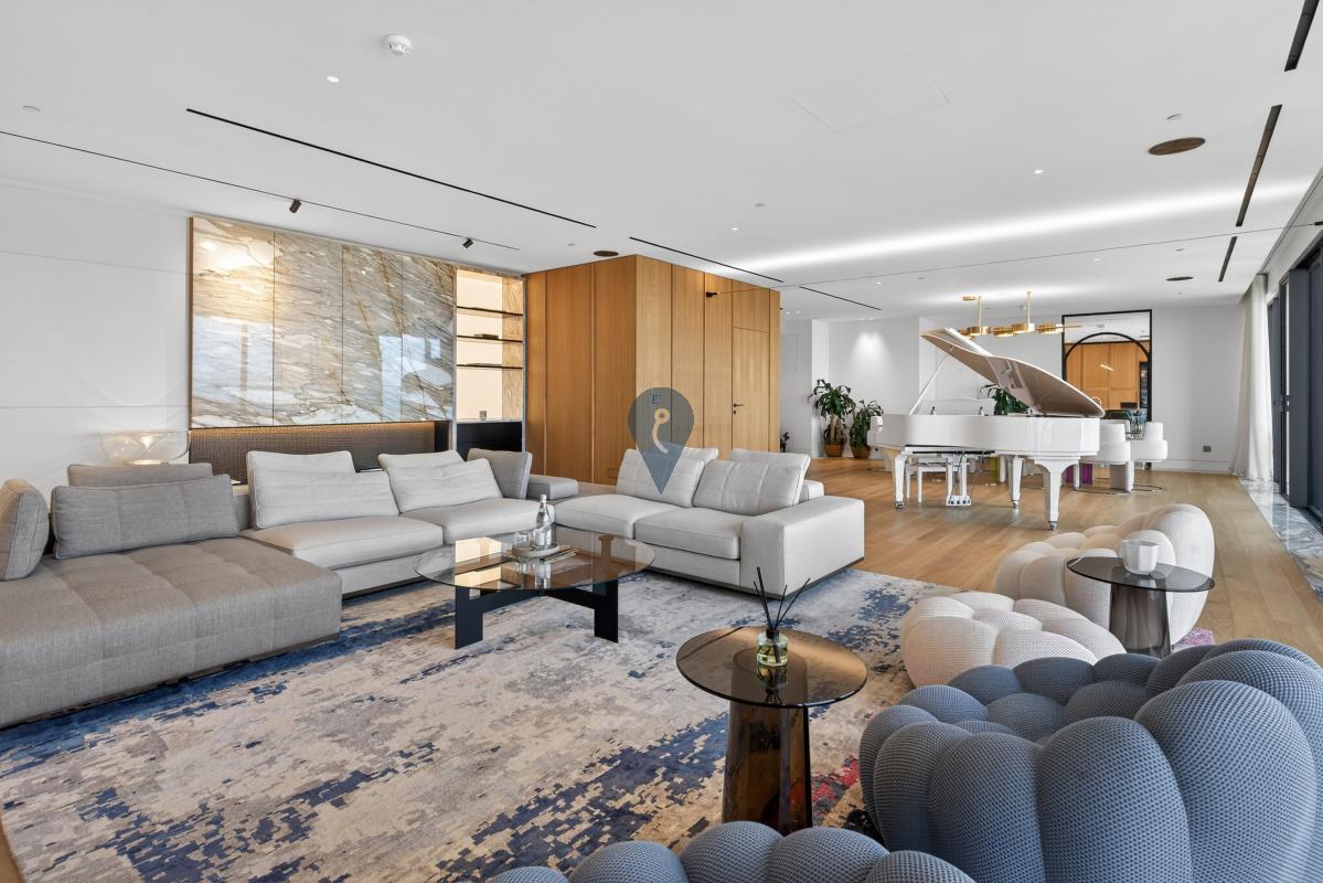 The main living and entertaining areas are curated with internationally significant design pieces, including sculptural furnishings by Roche Bobois and Minotti, complemented by integrated Bang & Olufsen systems that deliver uncompromising audiovisual performance. Each space is proportioned not only for comfort, but for presence — an environment designed to host, to retreat, and to exist above limitation.