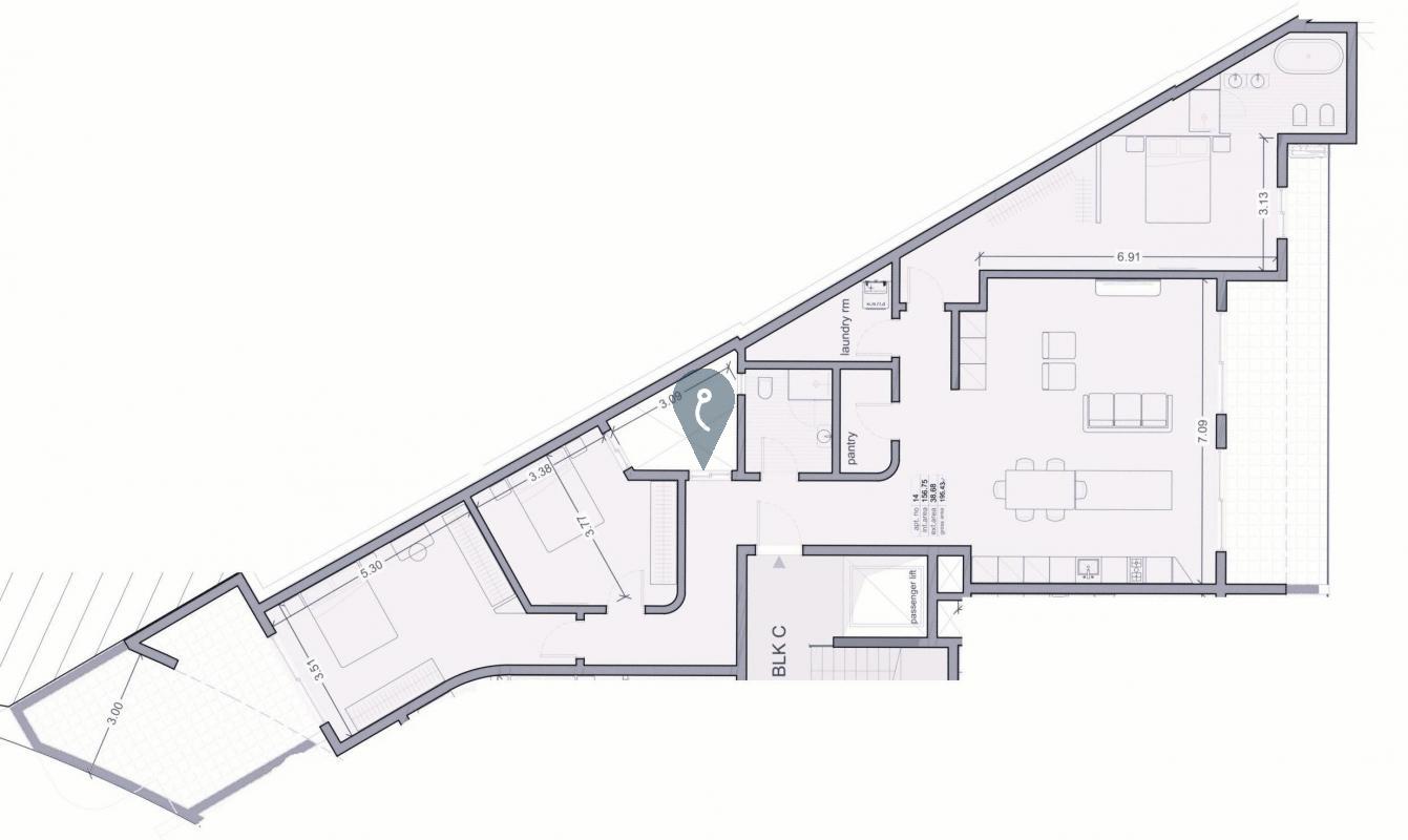 QAWRA - Three-bedroom penthouse offering 156 sq m of internal living space with an additional 38 sq m of external areas. Designed for elevated, contemporary living, the property will be delivered to shell form by December 2027, allowing bespoke interior finishes. Completion of all common parts is scheduled for October 2028 and will be at an additional cost.