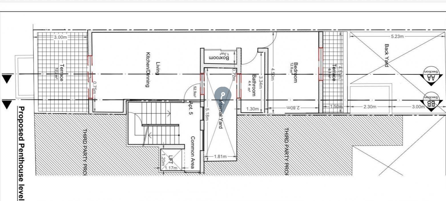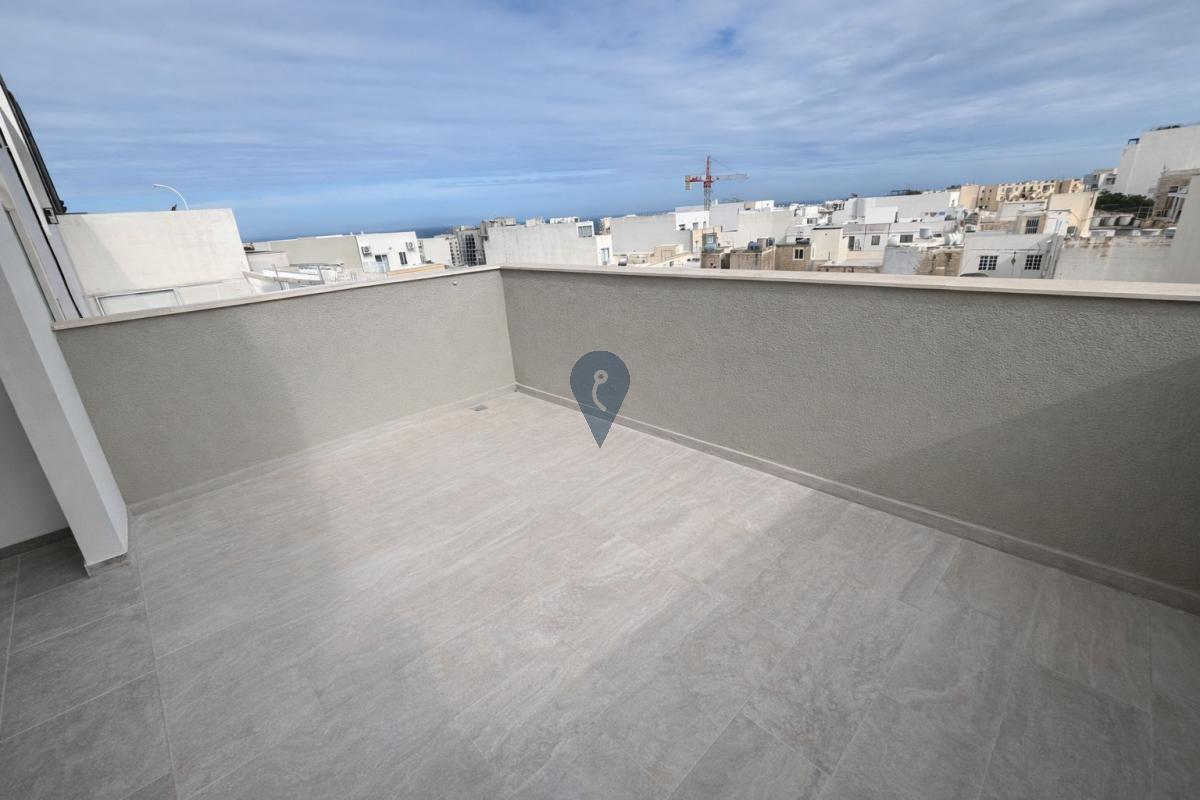 Modern one-bedroom penthouse for sale in St Julian's, just steps from Balluta Bay. Located on the fifth floor of a newly built block, this property features an open-plan kitchen, living and dining area, front and back terraces, roof terrace with airspace, lift access from first floor, and is being offered finished—ideal as a stylish residence or investment.