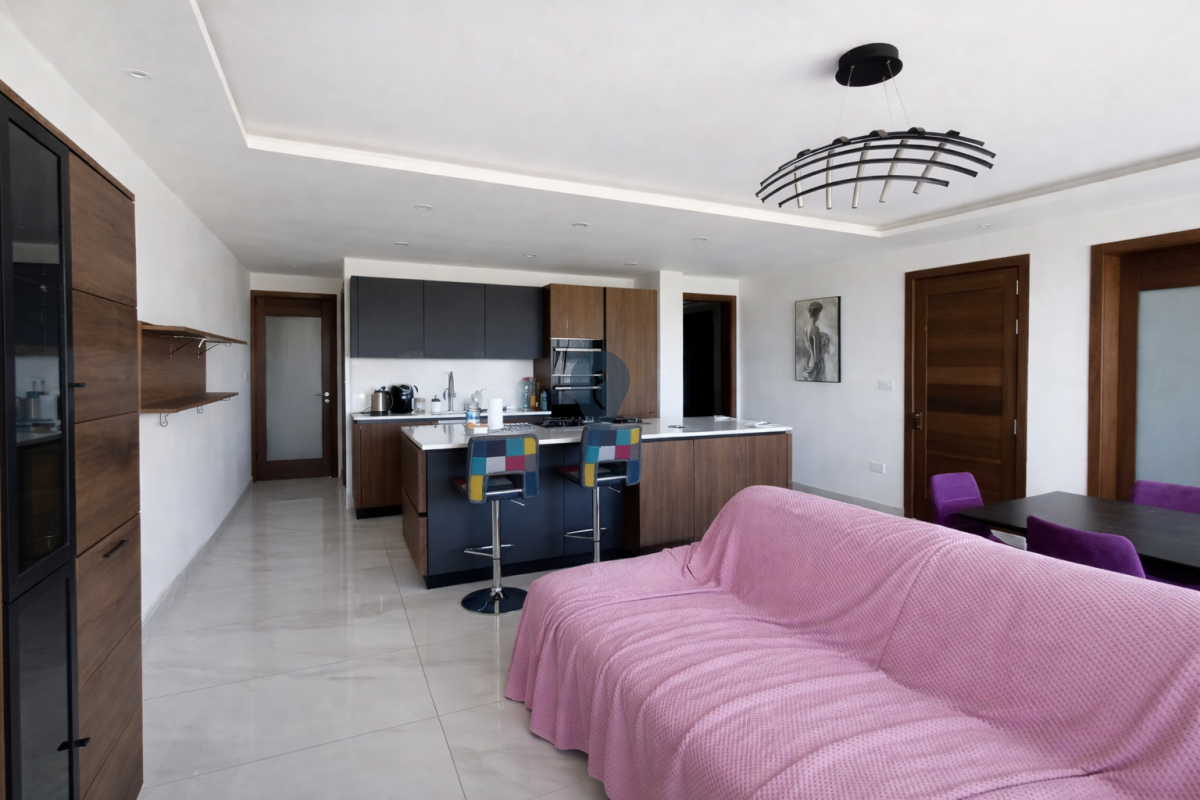 MARSAXLOKK - Fourth-floor apartment, small block, in a nice area of this village, with distant sea views, consisting of an open plan leading to a good-sized front terrace, three bedrooms, a main with ensuite and walk-in, and a main bathroom. Being offered furnished, fully ACs, and a freehold contact agent for more info.