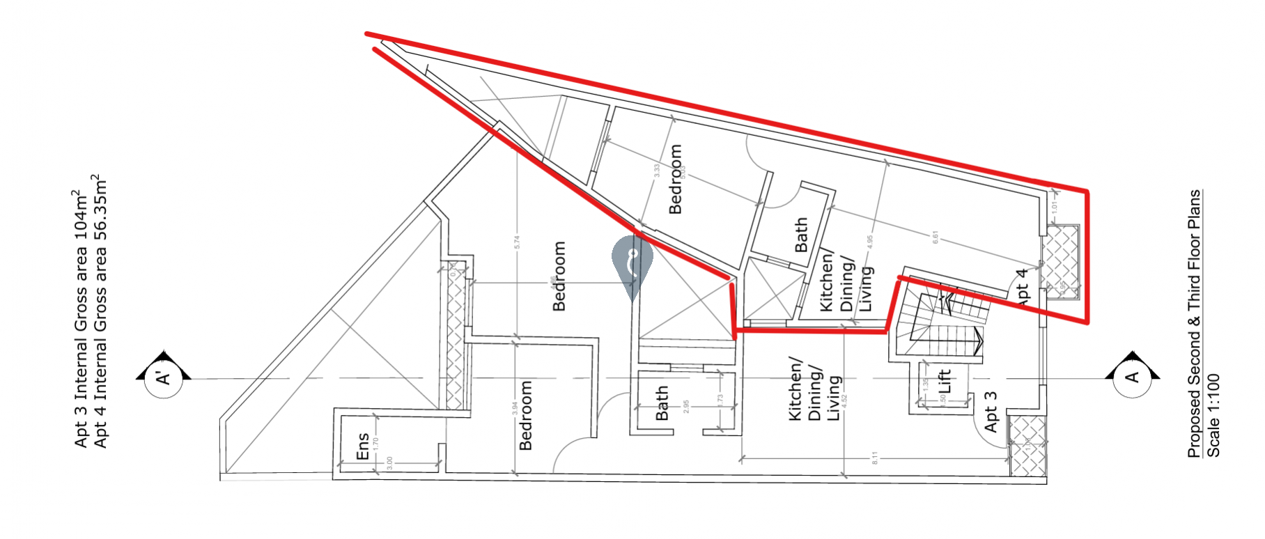 The apartment is to be offered finished, including aluminium apertures, high-quality flooring, a fully fitted bathroom, and internal doors.