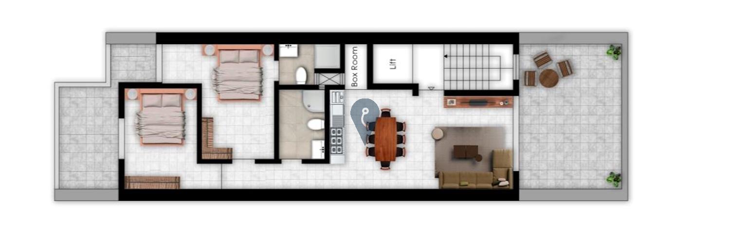 Penthouse enjoys approximately 83sqm of well-planned internal space, complemented by 43sqm of external areas, including a front terrace and a back balcony. The layout is centred around a spacious living area, ideal for both relaxed family life and elegant entertaining.