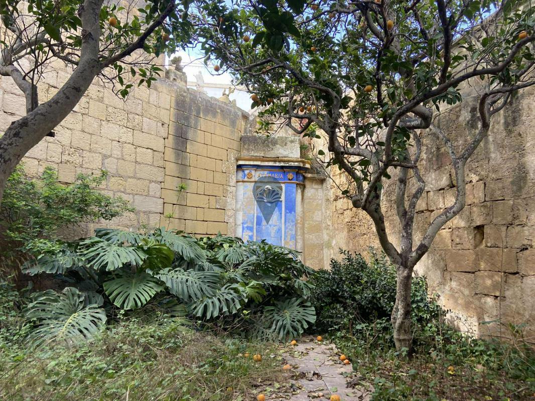 Rich in authentic architectural details, the property features high ceilings, thick limestone walls, a belvedere overlooking the garden, and a roof terrace ideal for entertaining while enjoying views of the Maltese skyline. The expansive mature garden — a rare find — is adorned with fruit trees and complemented by a traditional well and storage shed, offering privacy and tranquility.