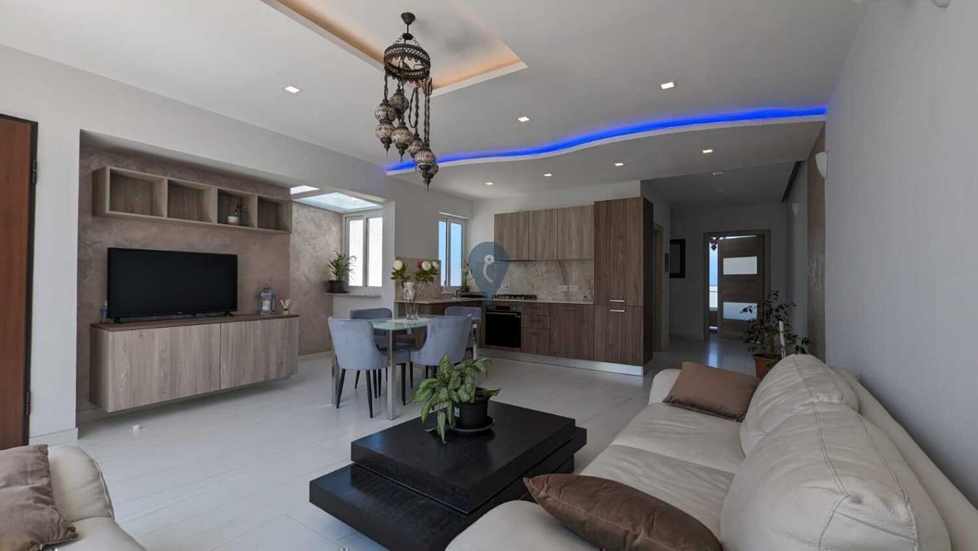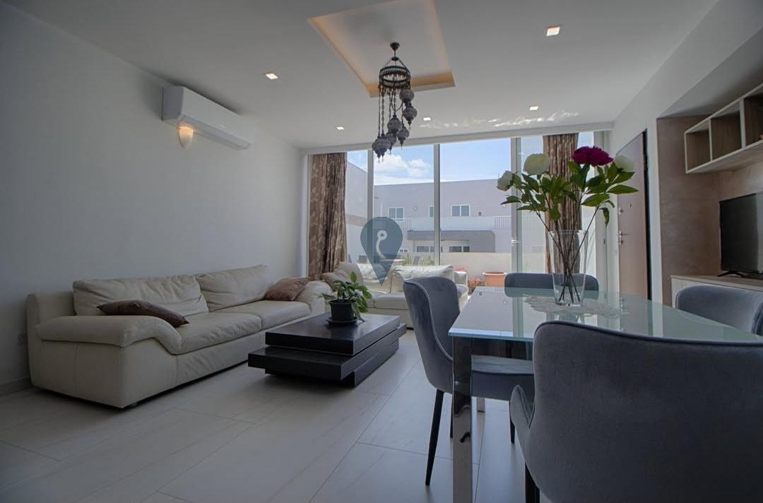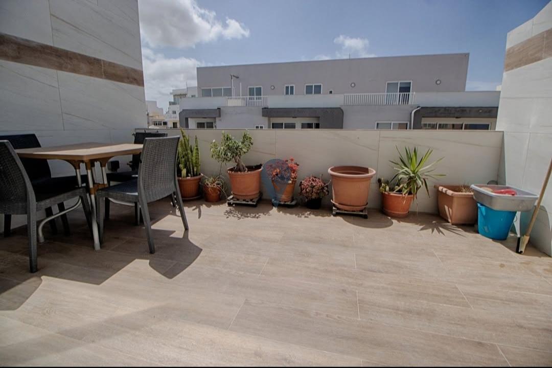 Situated in Bugibba, just a short distance from Bugibba Square and all essential amenities, this newly built two-bedroom penthouse is finished and furnished to a high standard. It features a welcoming, open-plan kitchen, dining, and living area with a modern fitted kitchen that opens onto a generous front terrace ideal for entertaining. The property also includes two double bedrooms, a main bedroom with an en-suite, a balcony at the back, and a main bathroom. Fully air-conditioned and offered for freehold.