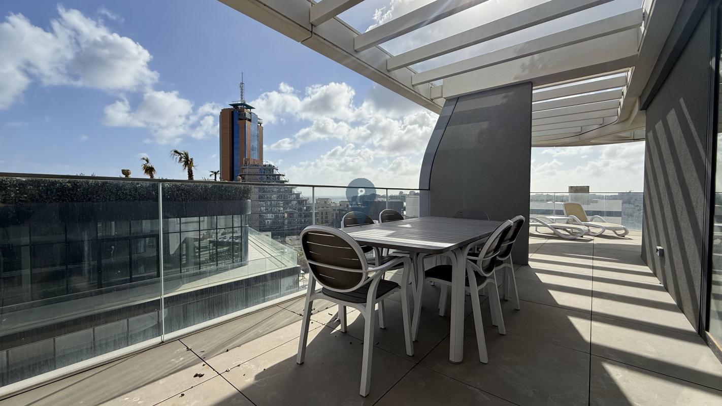 Set on the 8th floor within Mercury Suites, this brand-new, fully furnished penthouse offers a turnkey home in one of St. Julian’s most convenient addresses. Designed for easy living and strong rental appeal, the layout is bright and practical, with an open-plan kitchen, living and dining area finished in clean contemporary lines and full-height glazing that connects seamlessly to the outdoor space.