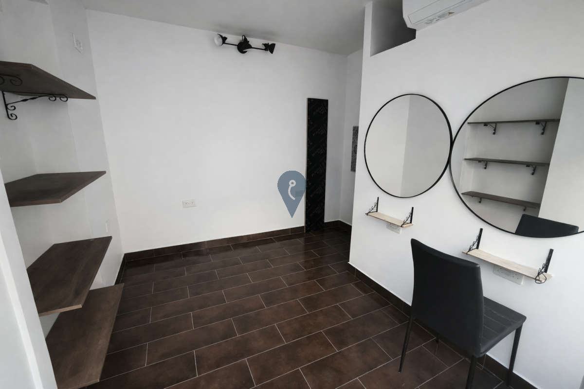 The premises are being offered fully finished and include a private bathroom, as well as water and electricity connections. It is ideal for use as an office, boutique shop, hair salon, or professional consultancy.