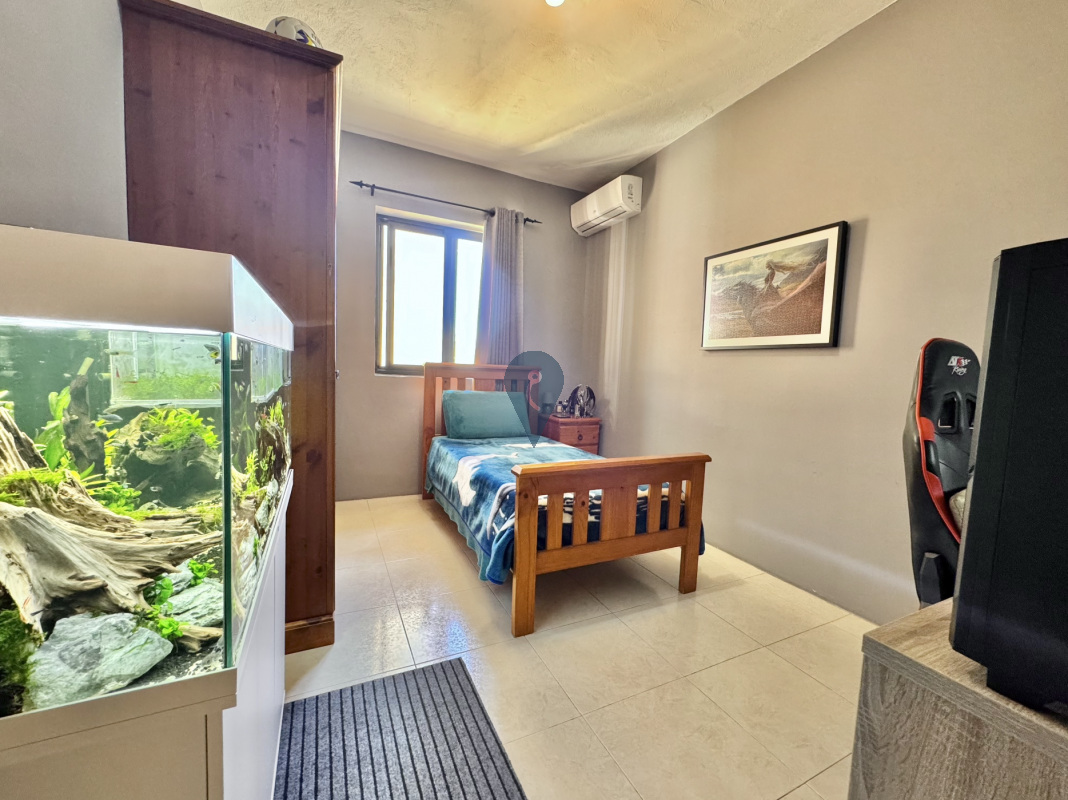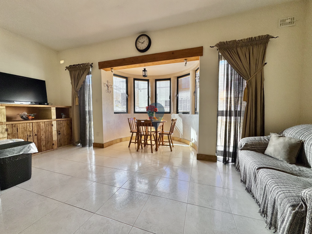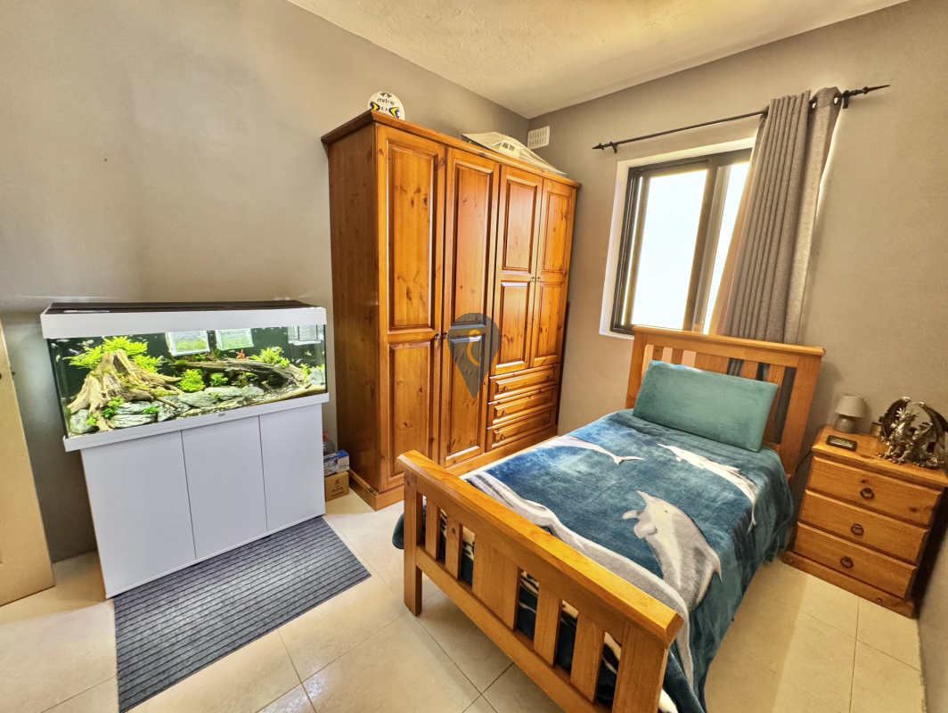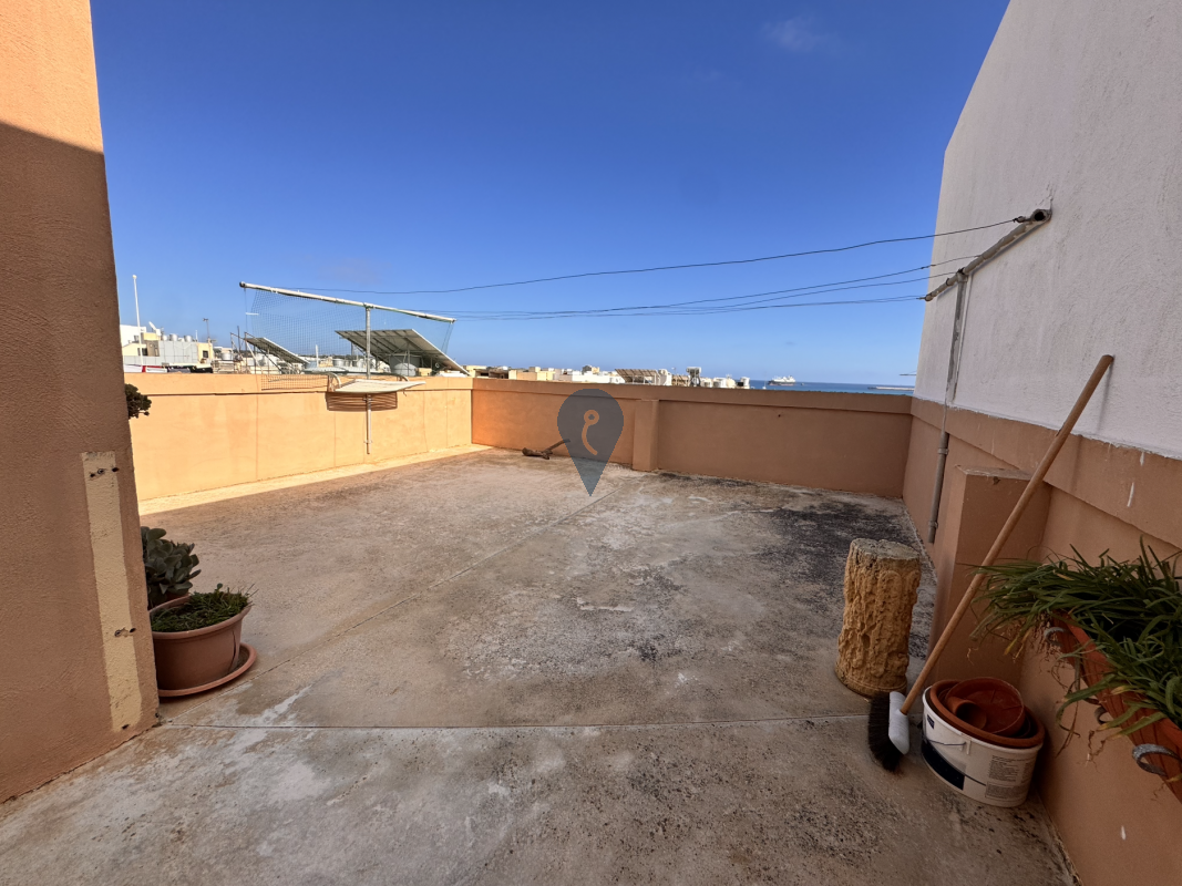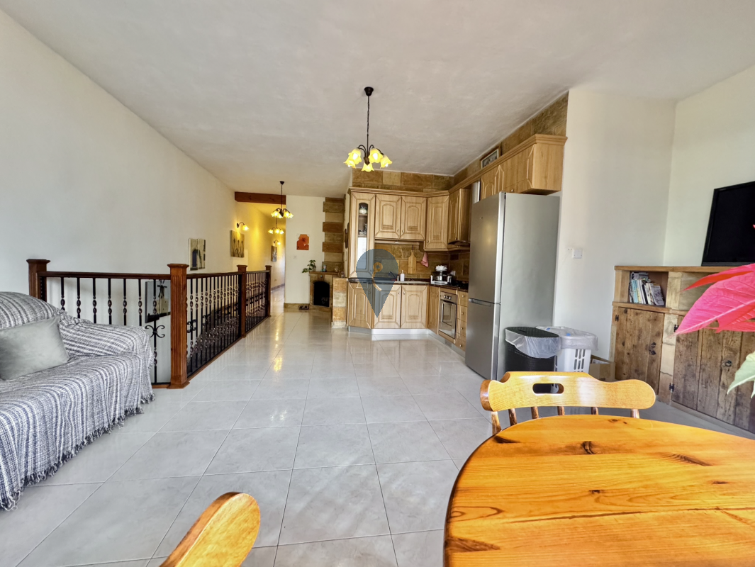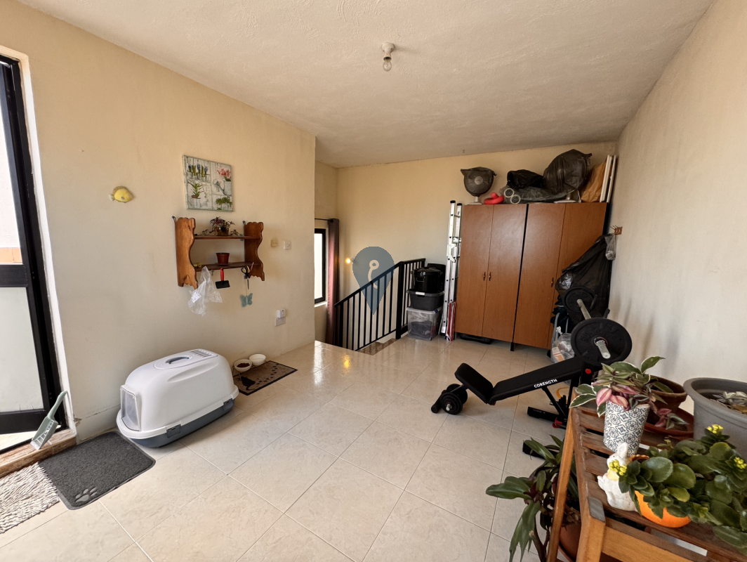 Situated in a sought-after area of Birżebbuġa, this well-kept first-floor maisonette offers a spacious and practical layout. Upon entering, one finds a bright open-plan kitchen, living, and dining area complemented by two small front balconies.